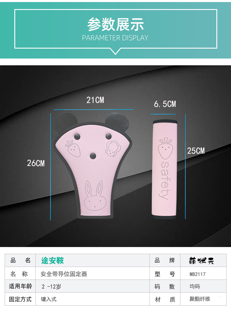 子供専用自動車シートベルト調節固定器首引き防止アニメ肩かわいいウサギの腹保護制限器