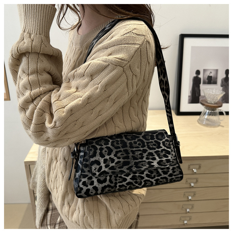 上新今年流行シンプル2024新型韓国版ファッション豹紋個性女性シングル肩斜め掛け脇下バッグ
