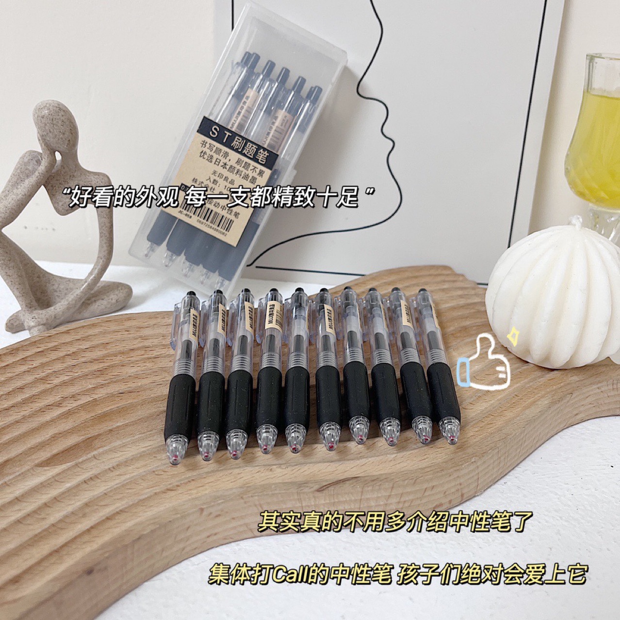ST学生用練習筆 無印良品風 プレス式ゲルインクペン 黒インクペン 水性ペン 0.5mmボールペン 速乾性インク