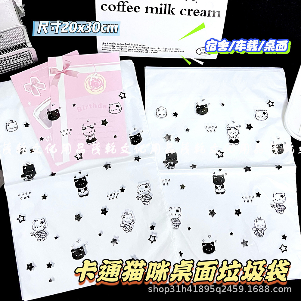 桌面垃圾袋可爱卡通kt小猫粘贴清洁袋ins学生车载专用收纳袋