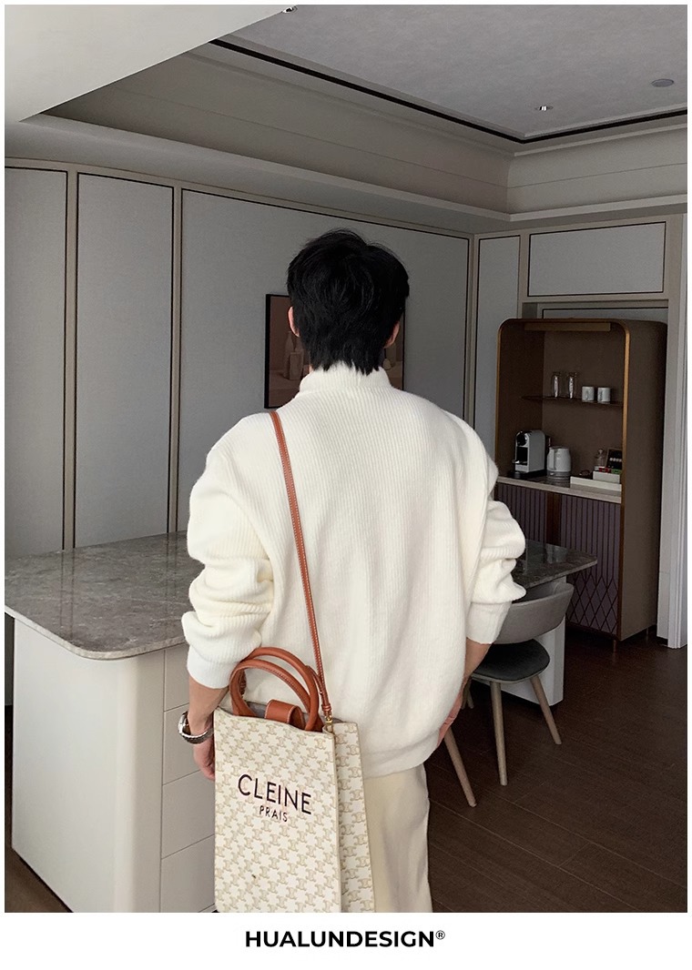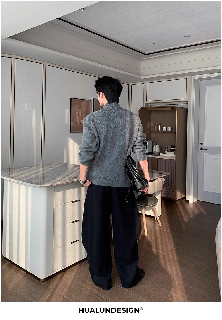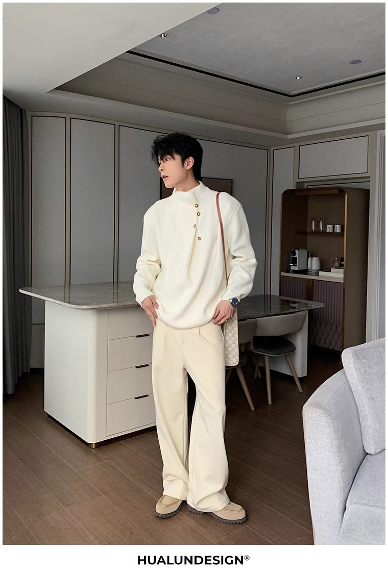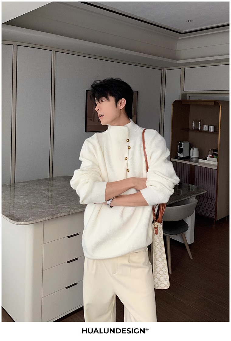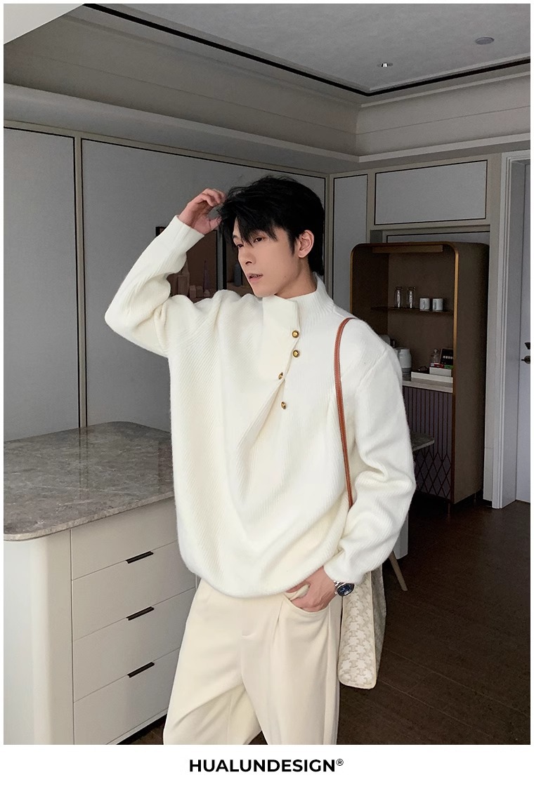 慵懒高级感亨利领毛衣男秋冬款韩系潮牌设计感套头软糯针织衫上衣
