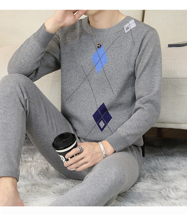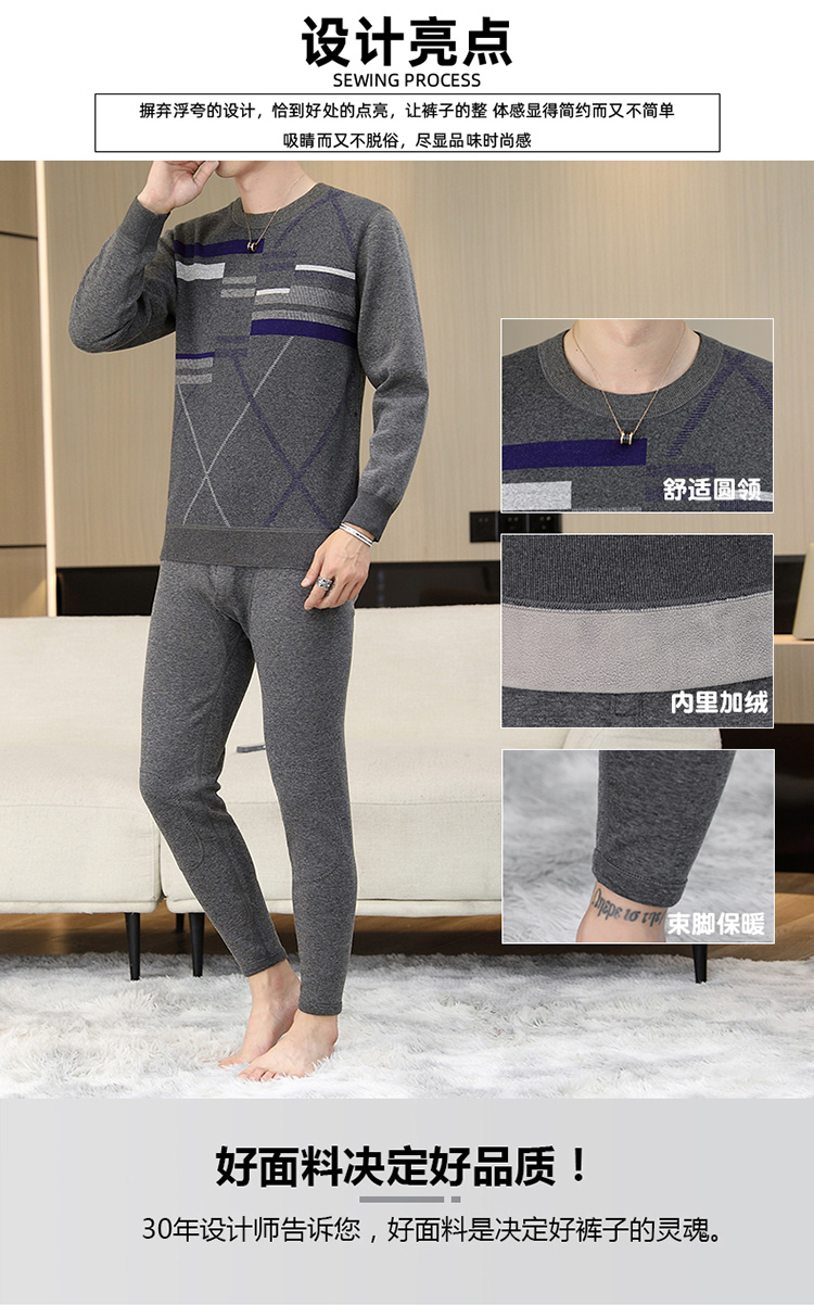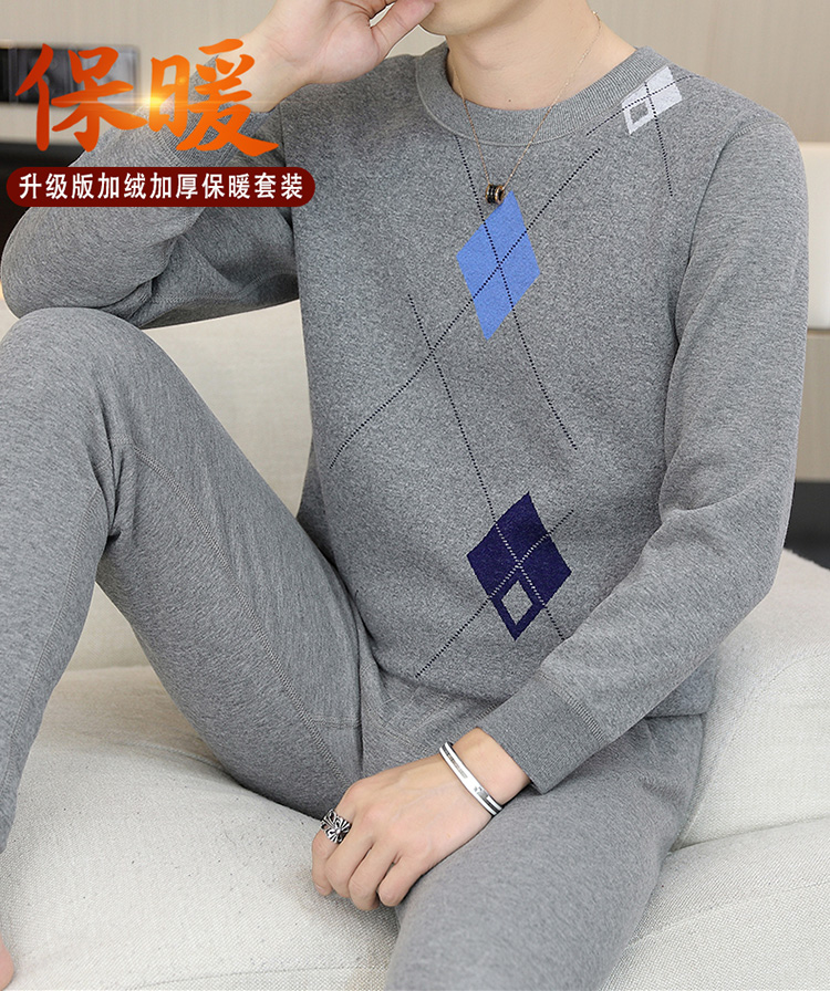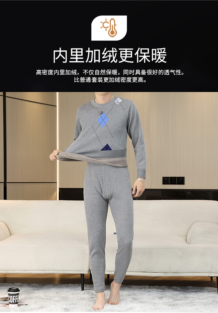 徳絨毛保温下着男性セット2024新型青少年高校大学生ベルベットダウン秋衣秋ズボン