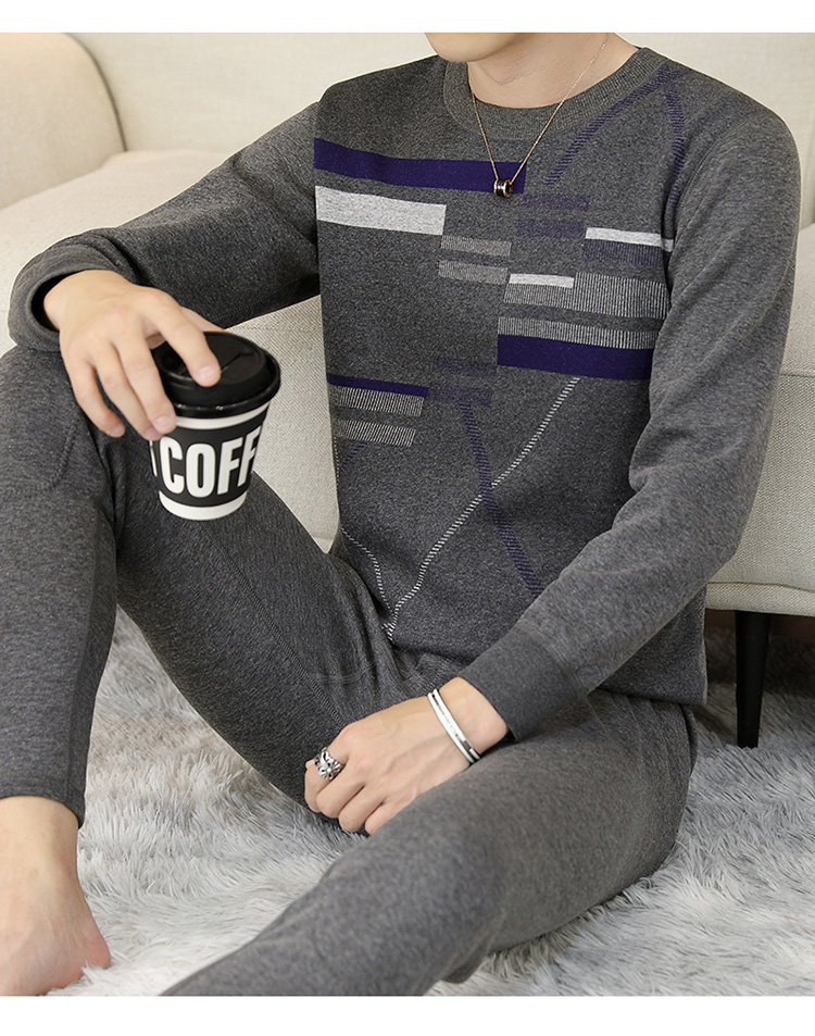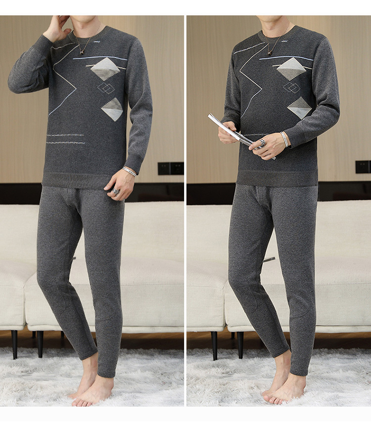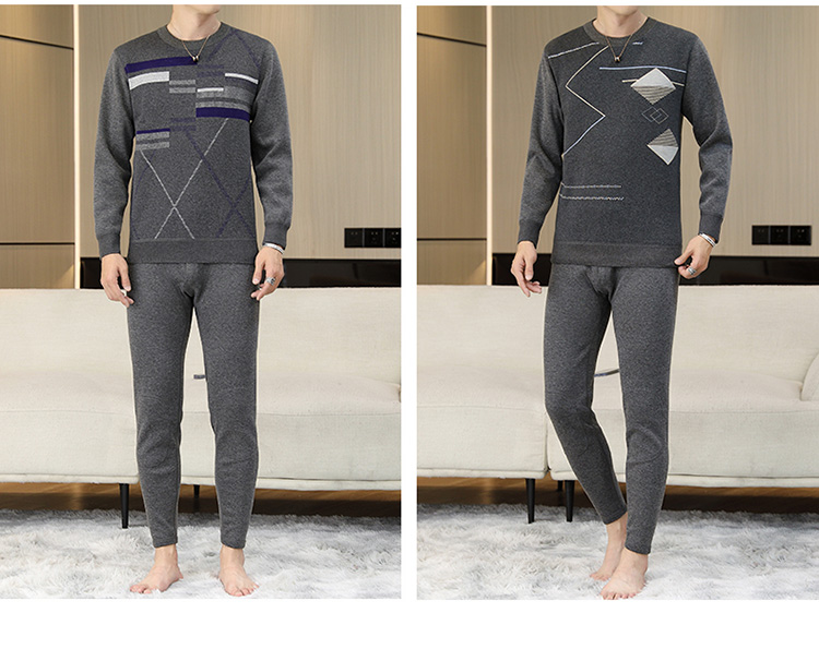 男性保温下着セットにベルベットをつけて、中高年のお父さんとおじいさんの男性式冬防寒秋衣秋ズボンを厚くします