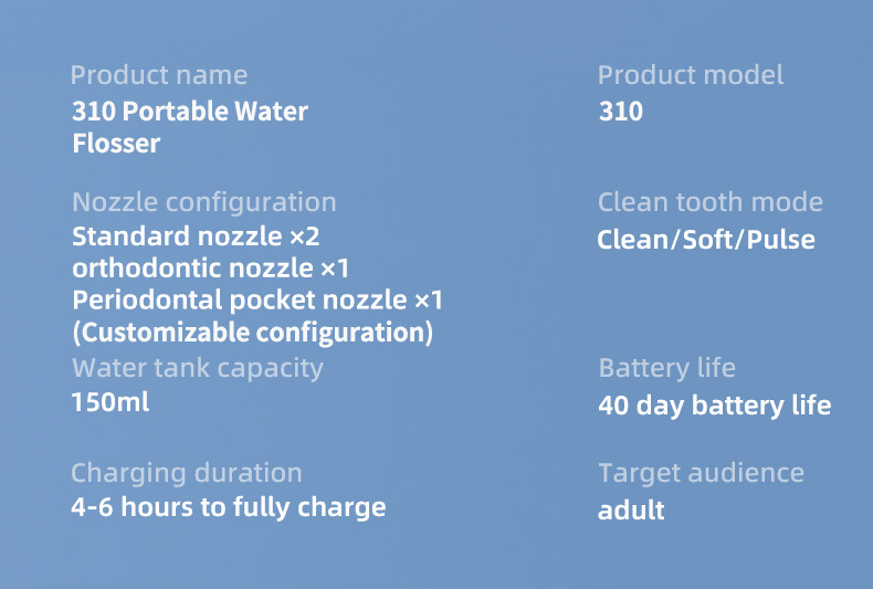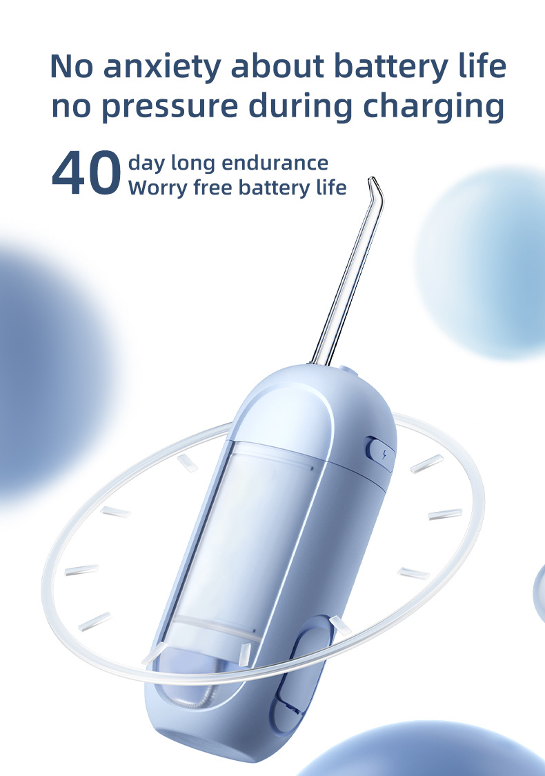メーカー直販の電動ポータブル口腔洗浄器、家庭用、出張用ウォーターフロッサー、口腔洗浄ツール、長時間バッテリー搭載。