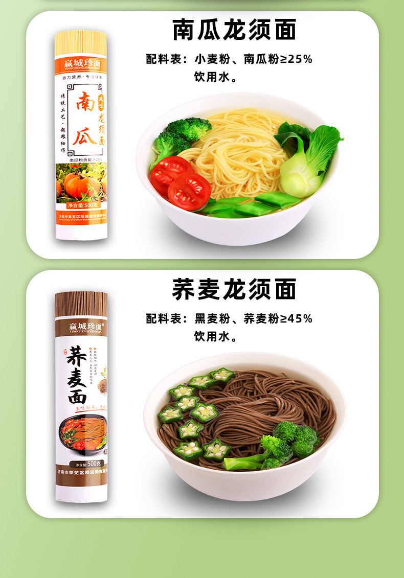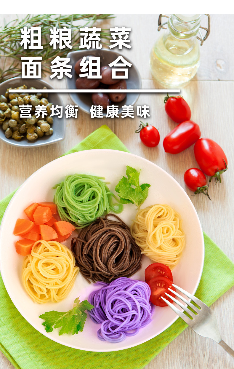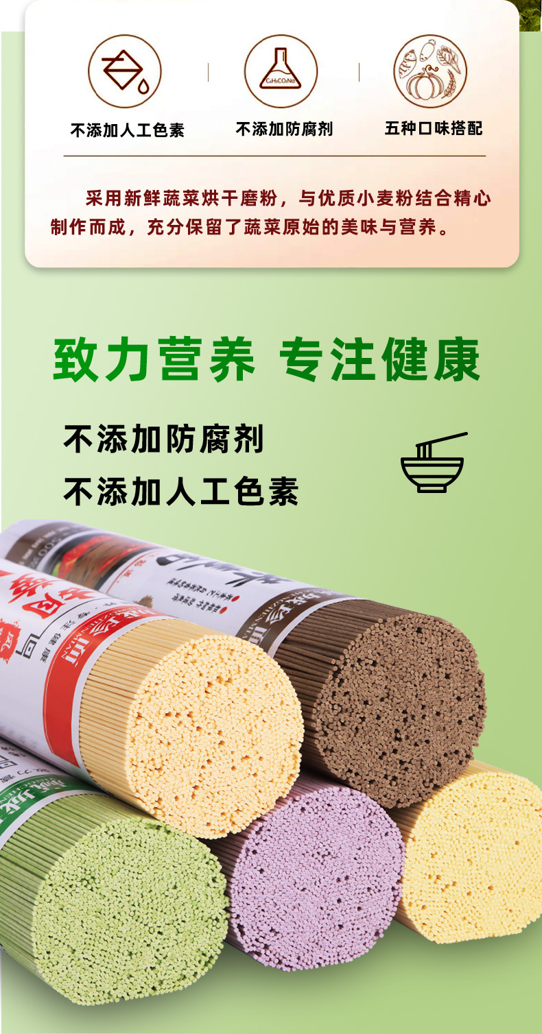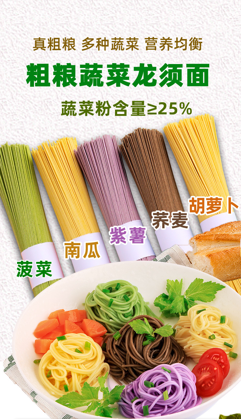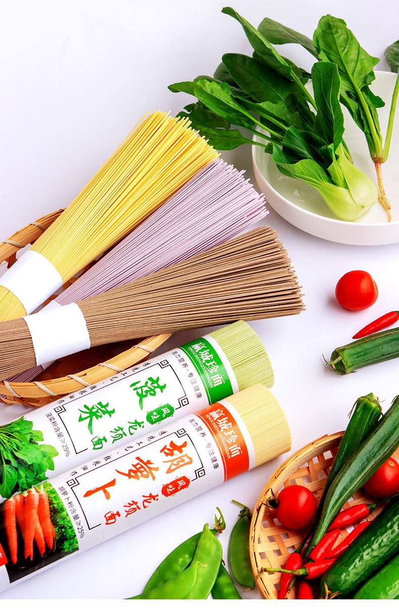 低脂肪野菜龍鬚麺、ほうれん草、かぼちゃ、紫芋、人参麺、五色朝食粗粒麺、卸売