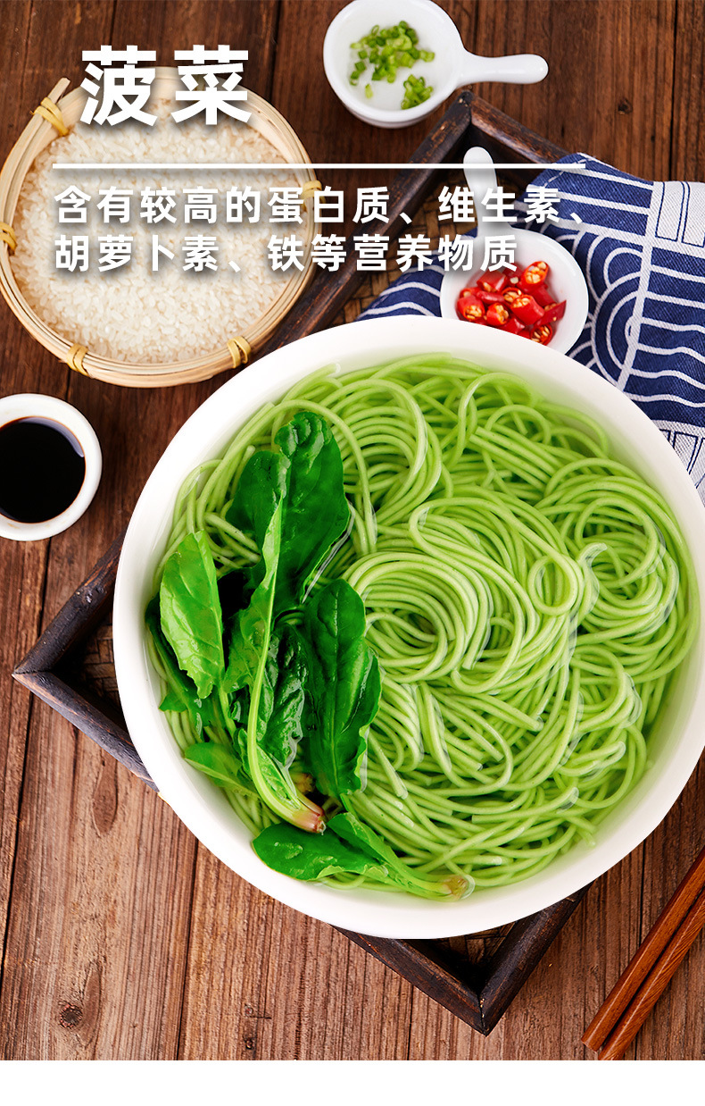 野菜入り龍ひげ麺、ほうれん草麺、カラフルな朝食用全粒粉麺、卸売健康朝食用緑野菜麺