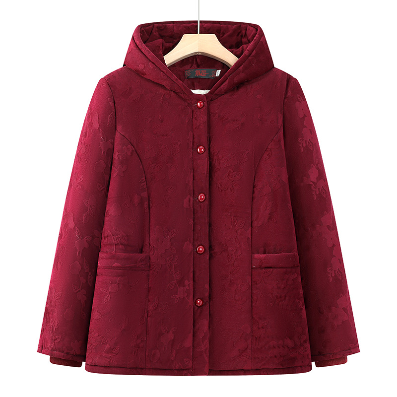 中高年女装秋冬綿服洋気母装加毛厚手の綿服2021新型綿入れコート