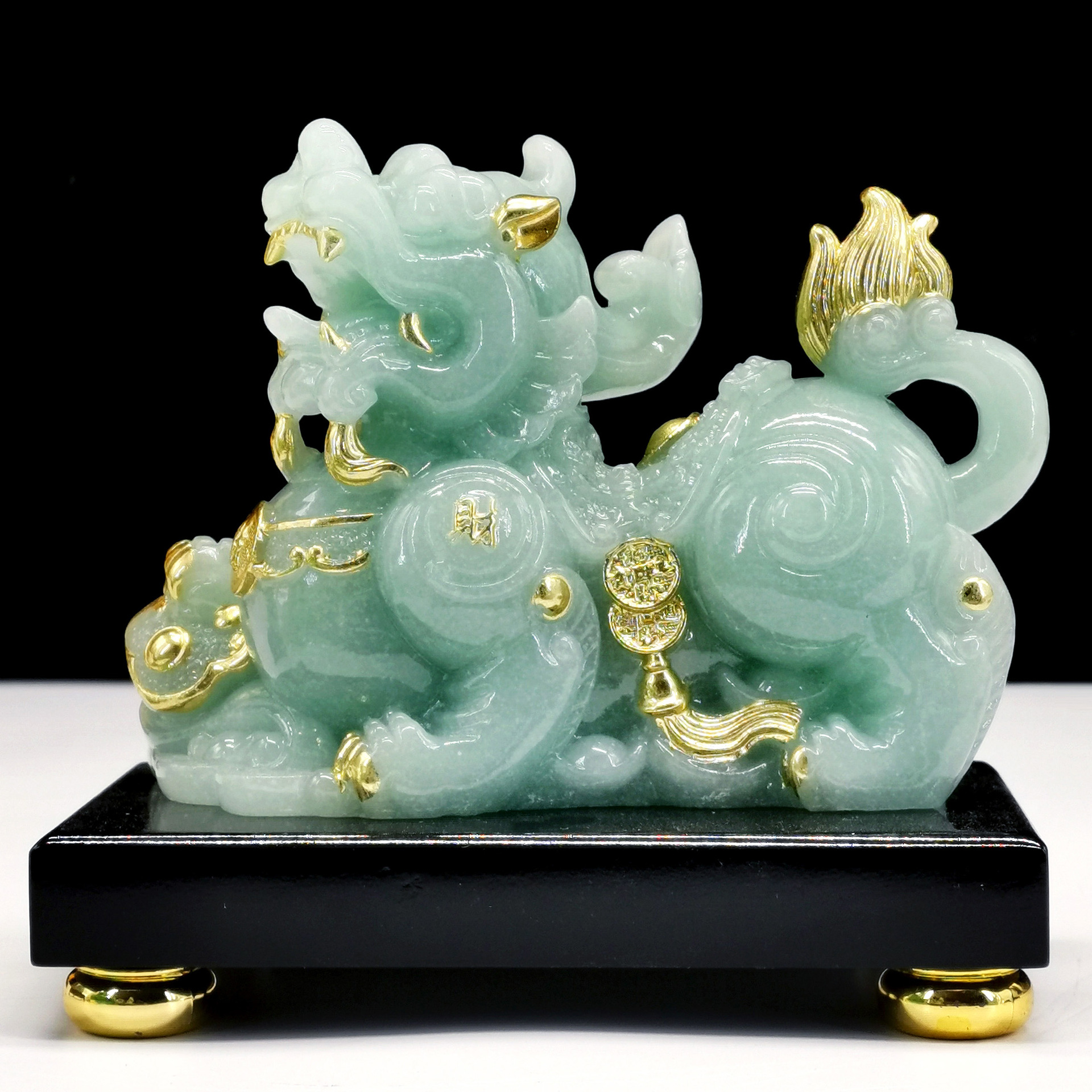 双龍聚宝樹脂工芸品十二生肖龍置物翠玉青龍装飾中国龍招財開業