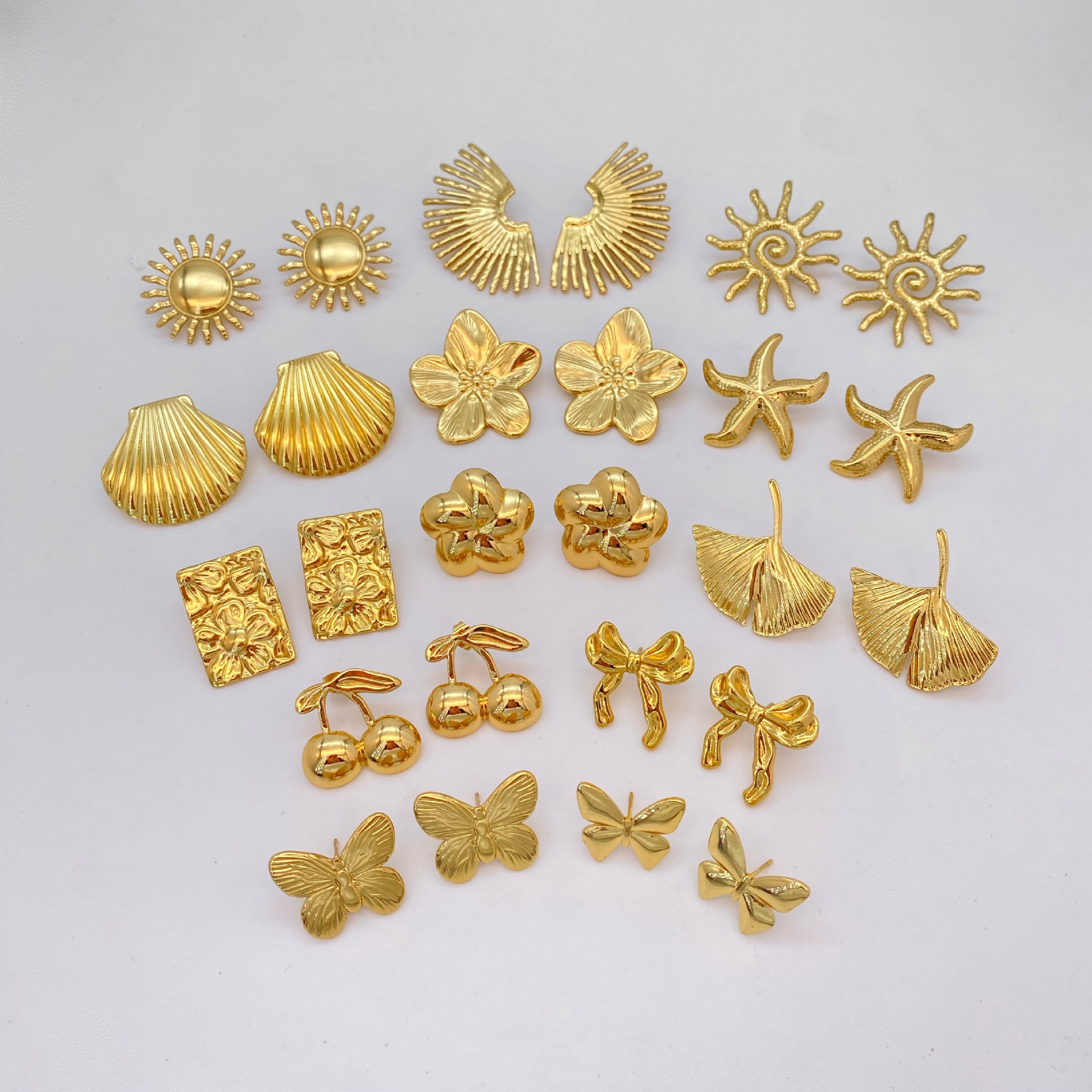 国境を越えて爆発した金色のハート型の小さなデザインの小さな英語のアルファベットのイヤリング