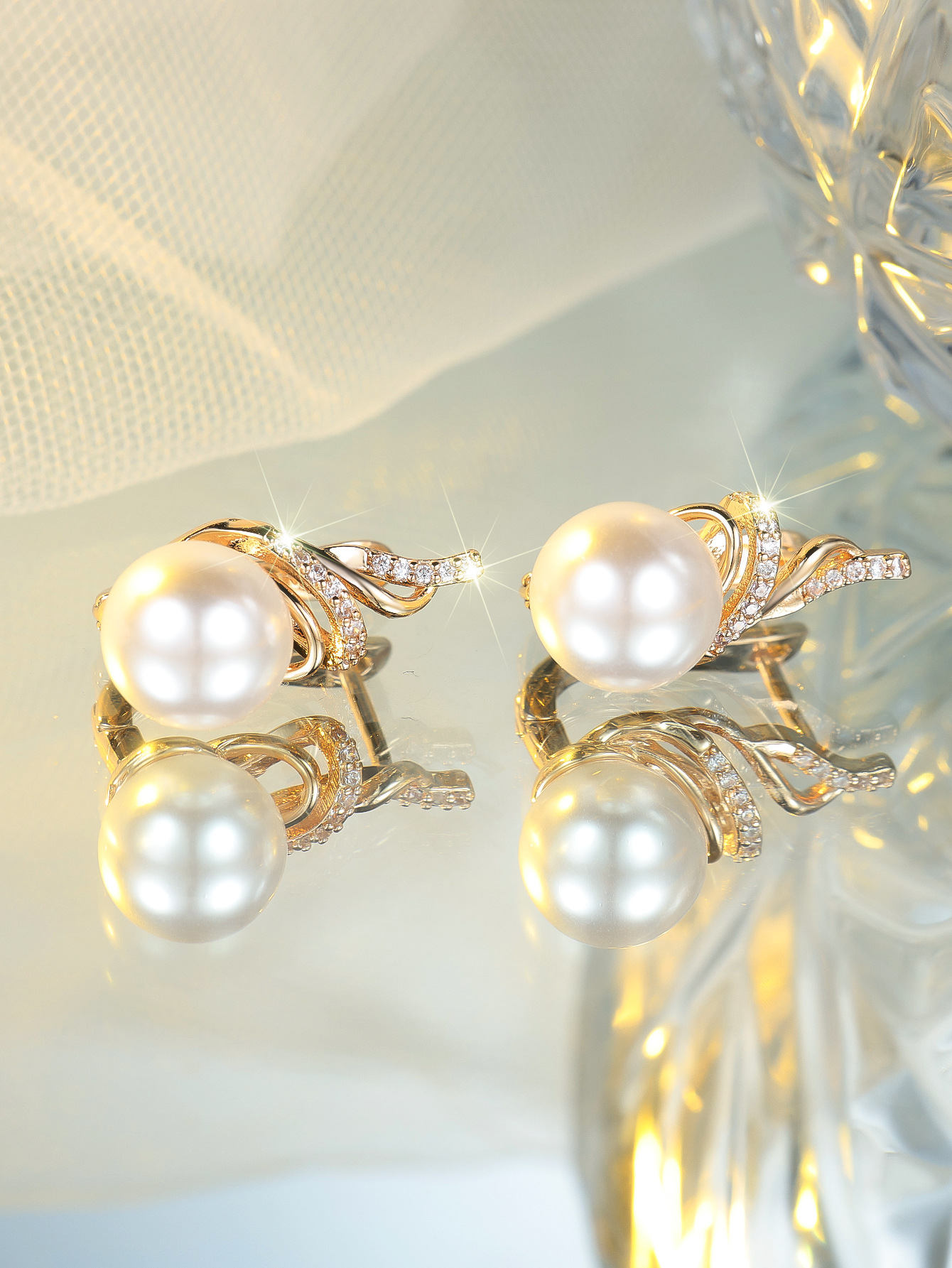 法式珍珠款耳环女2025年新款轻奢小众耳钉气质高级感金色独特耳饰