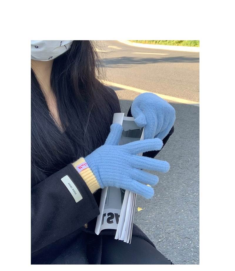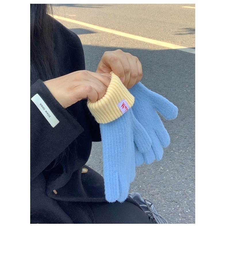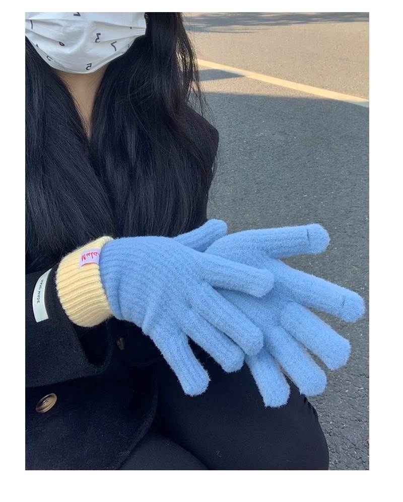 韩国针织毛线手套女士冬季防寒加厚加绒糖果色骑车触屏露指头五指