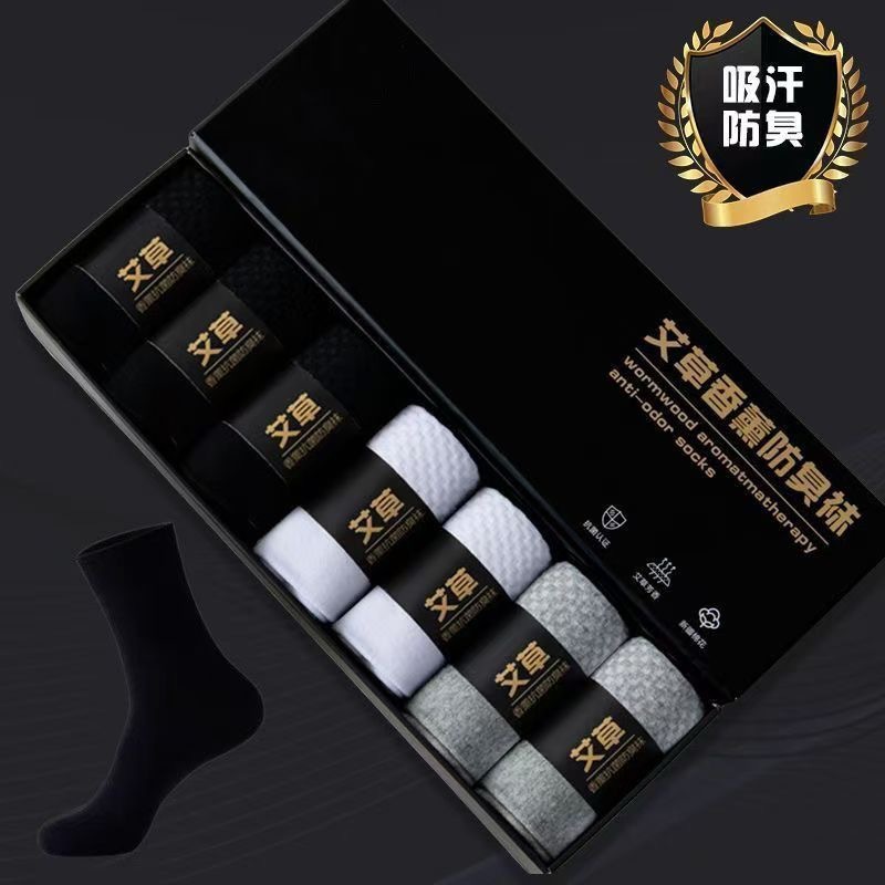 艾草香薰防臭袜男士商务运动袜亲肤舒适吸汗透气抗起球高弹力棉袜