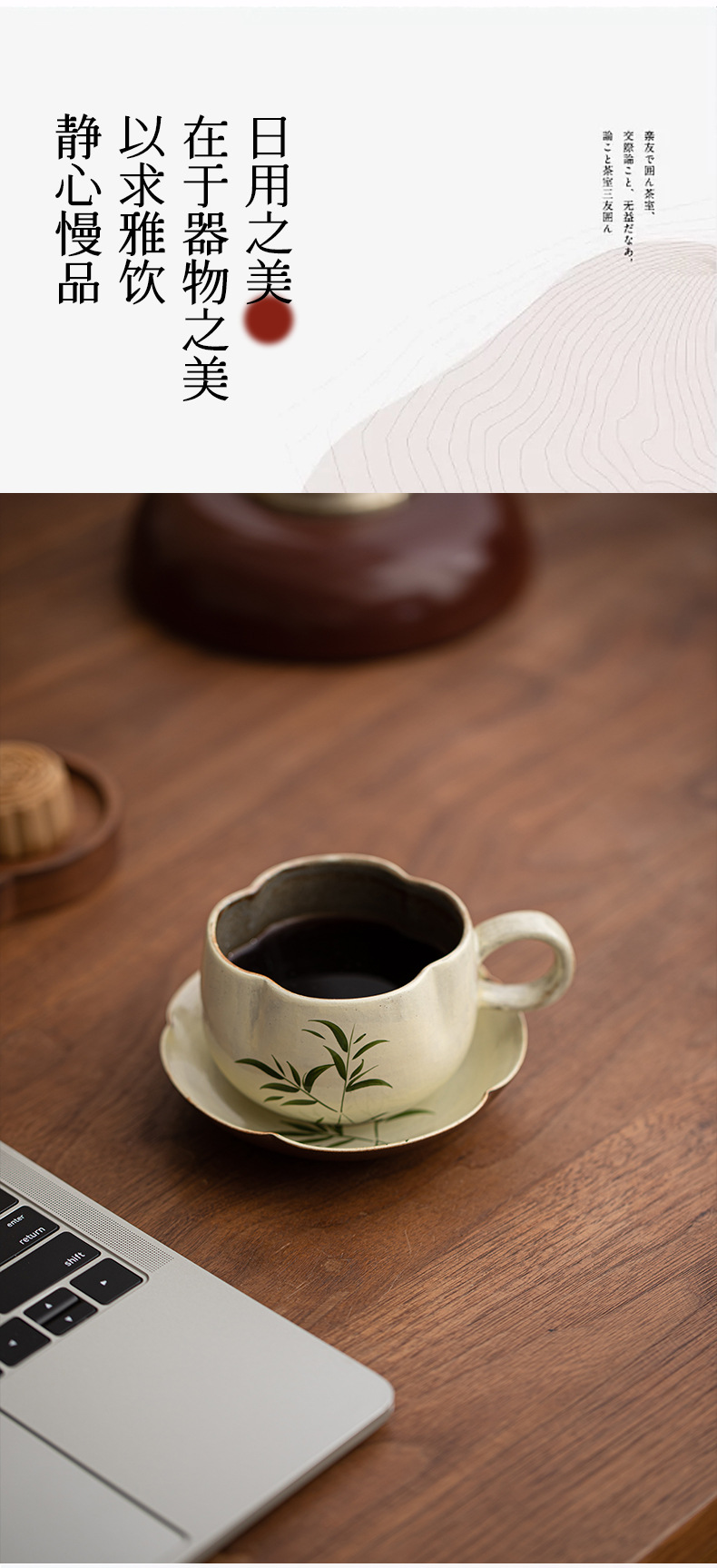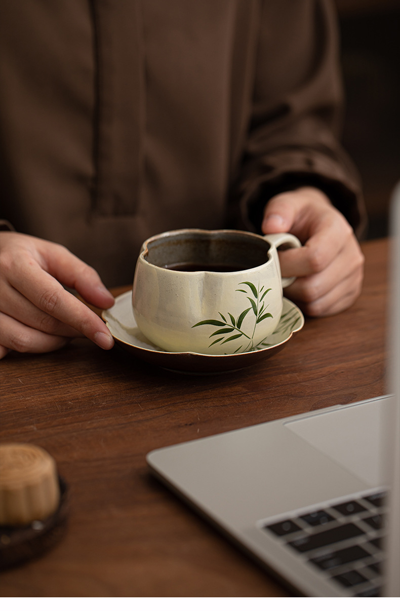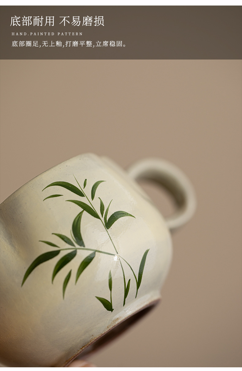 禧のマグネシウムの粉は手描きの翠竹の陶磁器の花の口のコップの事務室の女性を引いてコップのコーヒーを飲みます。