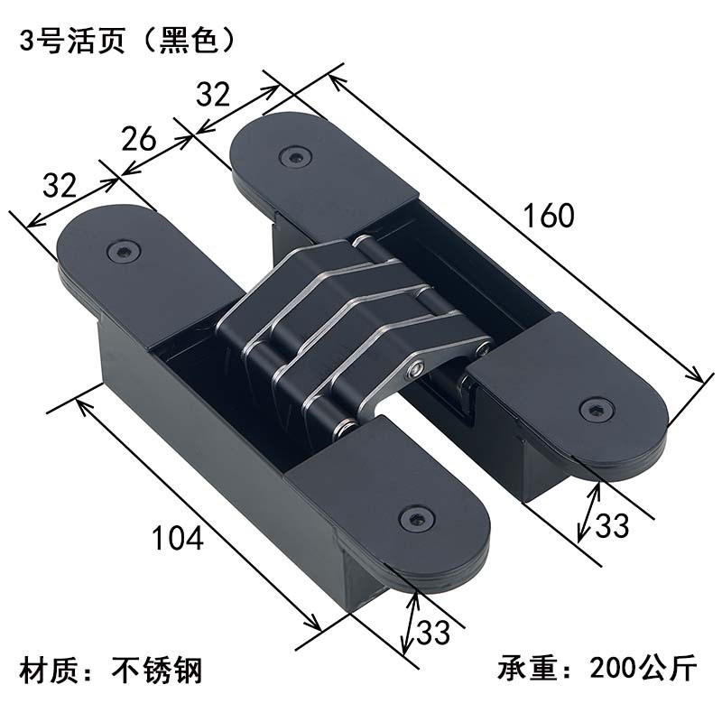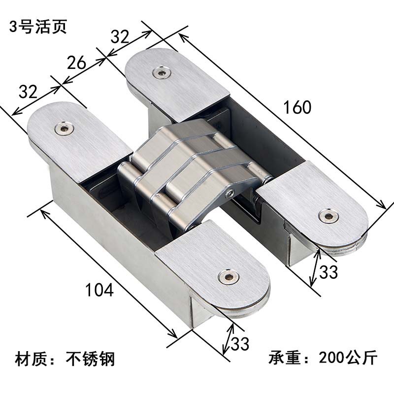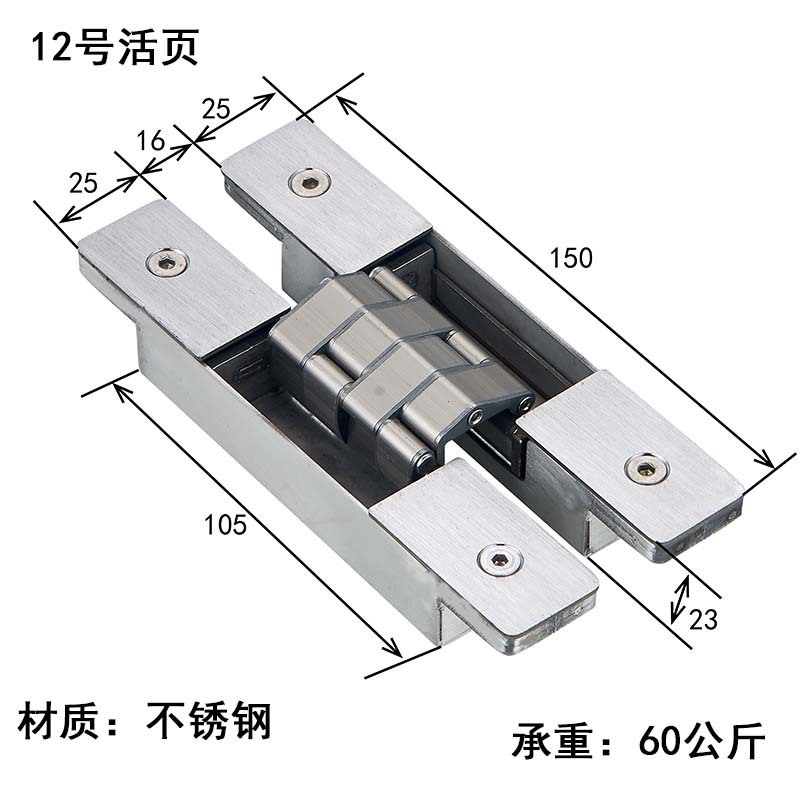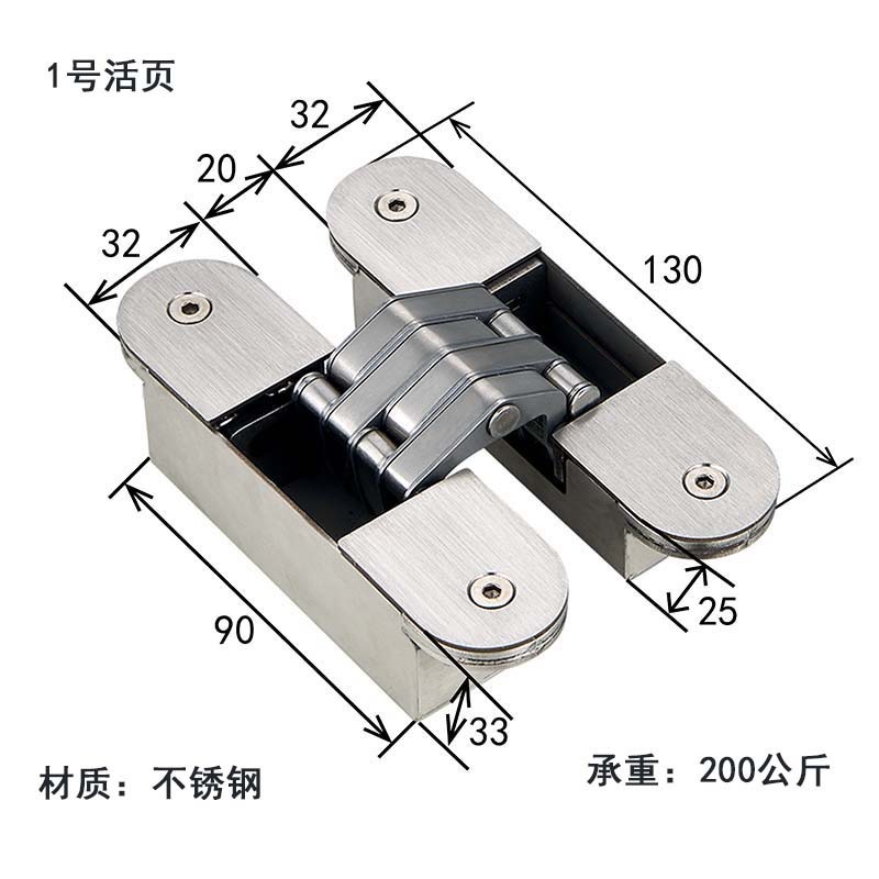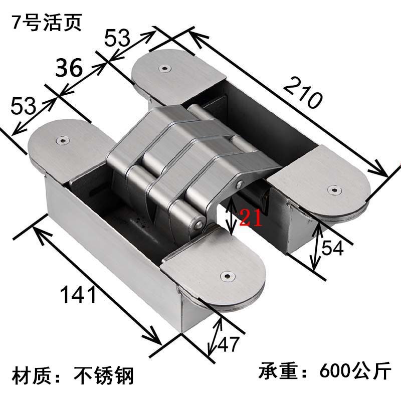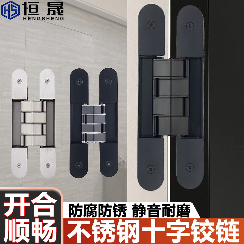 不锈钢三维铰链可调节隐形门合页房门木门折叠暗藏十字铰链暗活页
