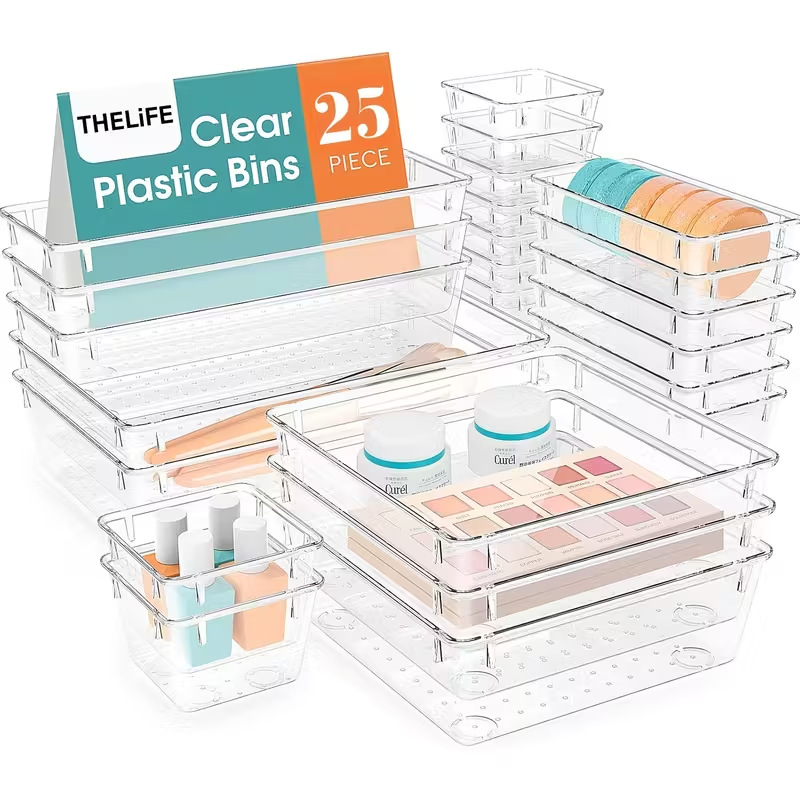 日本式透明収納ボックス分割フォーマット引き出し食器長条分割プラスチック収納ボックスデスクトップ下整理セット