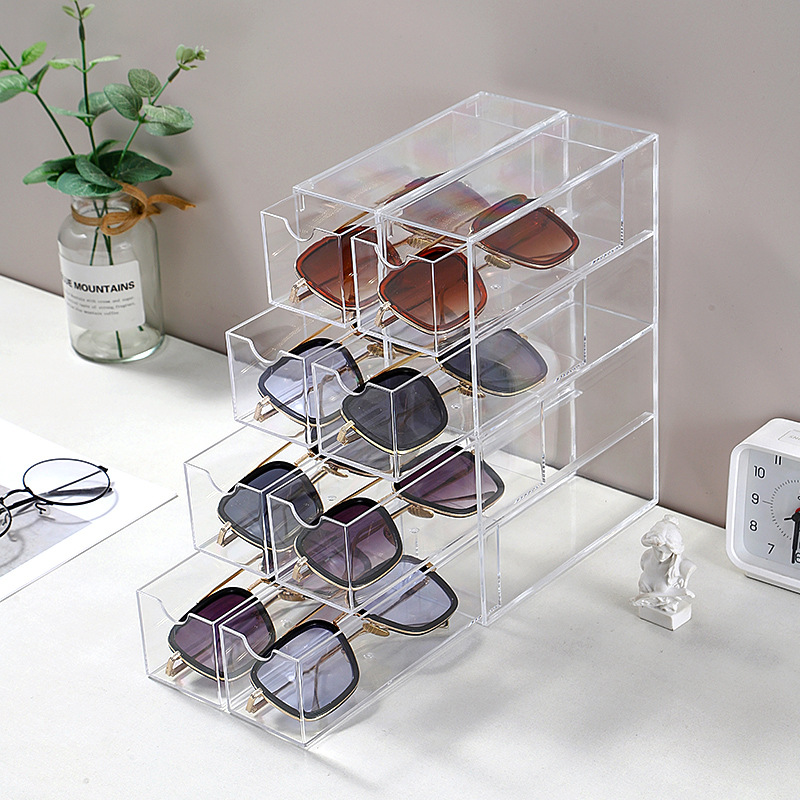 アクリルメガネケース天板収納引き出し式三層収納ケース卓上六宮格分類収納防塵