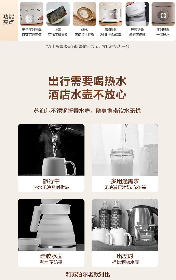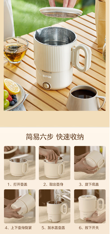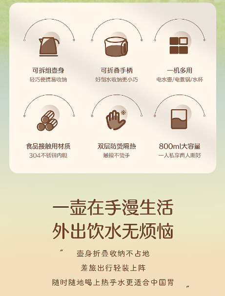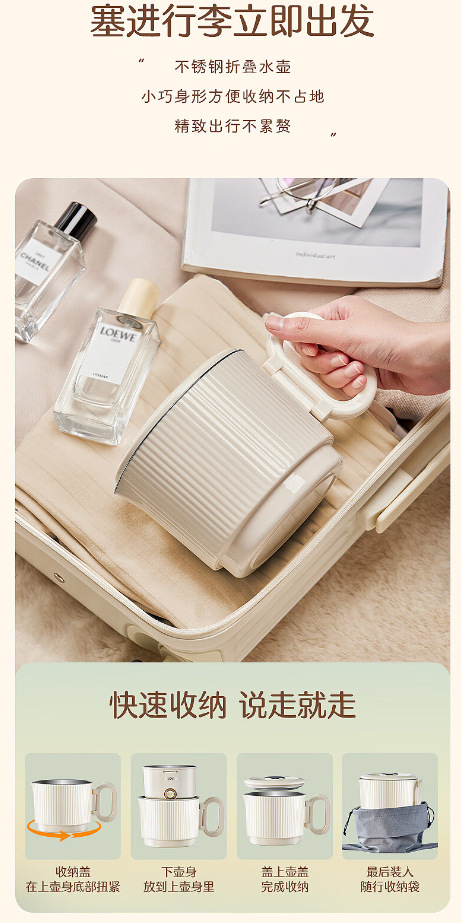 皆米电热壶家用烧水壶多功能折叠水壶便携式酒店旅行电热水壶礼品