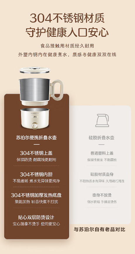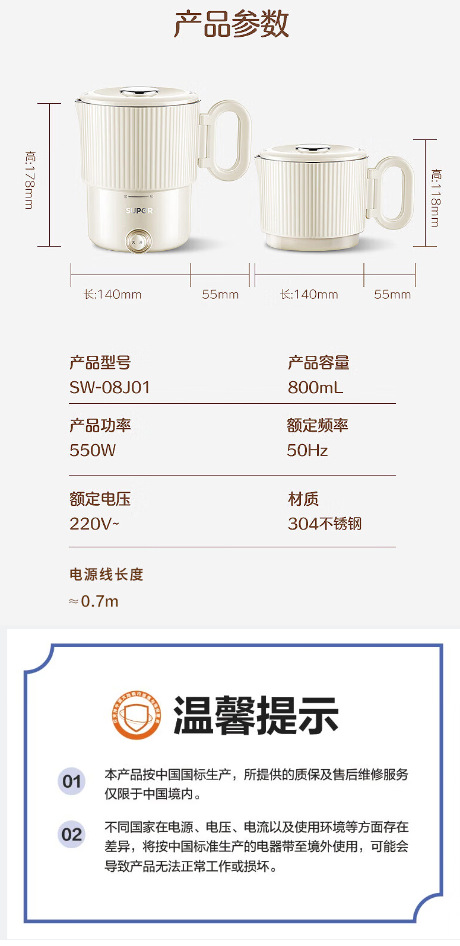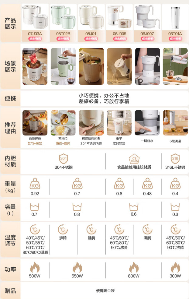 316可折叠烧水壶户外小型便携不锈钢电热水壶迷你出差旅行煮水壶