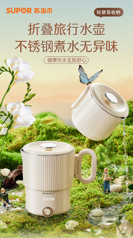 蘇泊爾折り畳み水筒旅行ポータブル湯たんぽステンレスミニ家庭用湯たんぽ保温一体