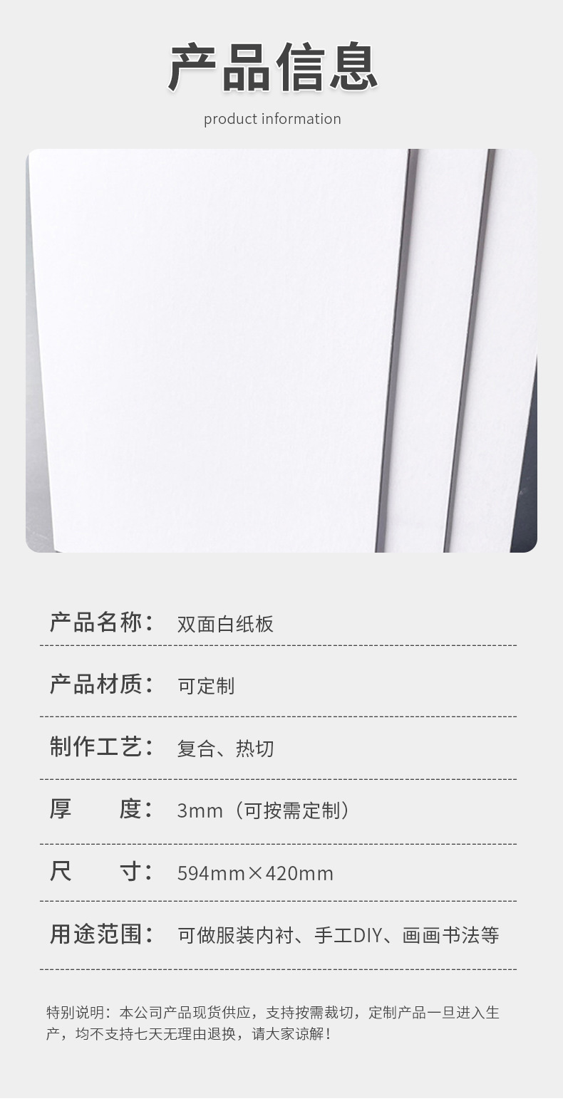 3m ma2灰芯両面白板紙服飾ライナー手作り材料食品包装両面白紙紙卸売り