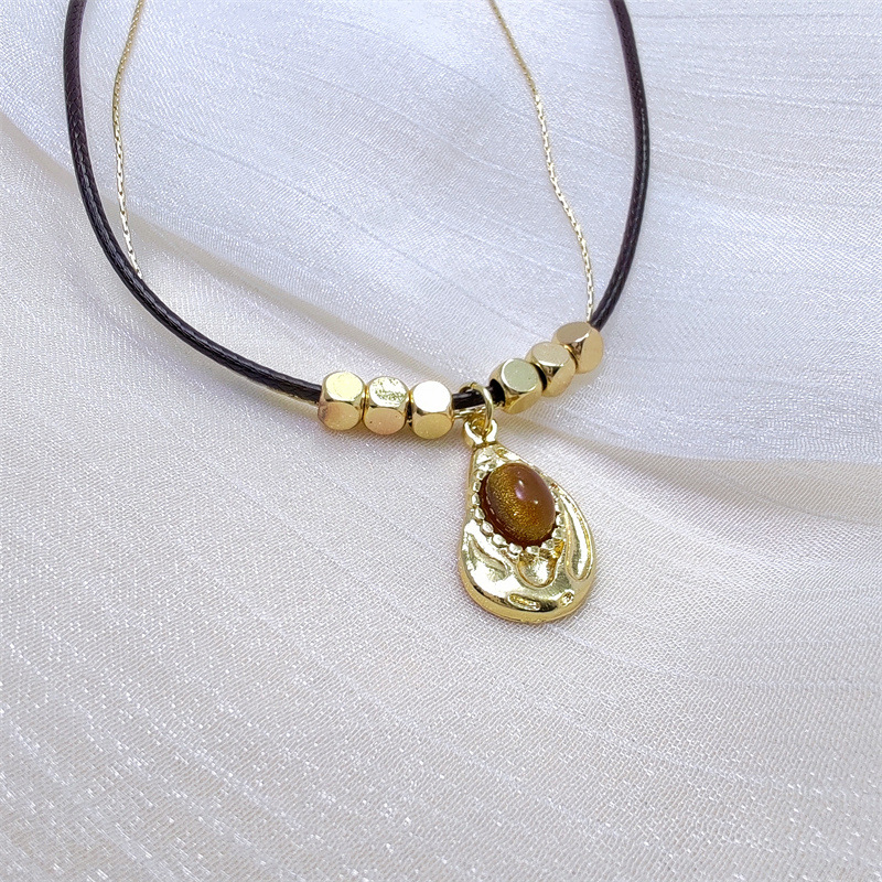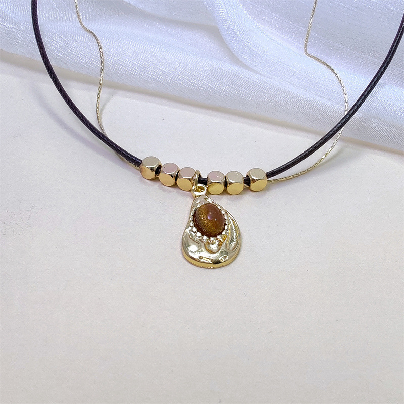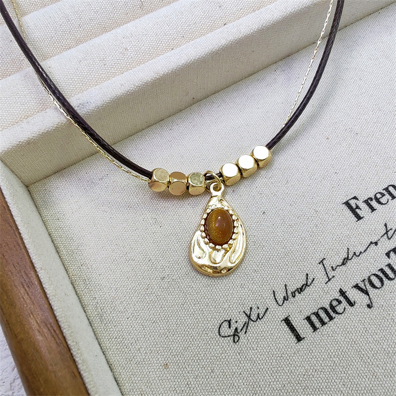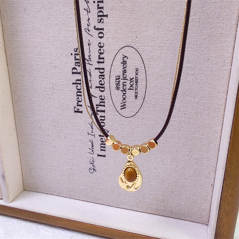 メイラードレトロ二層スタータイガーアイストーンペンダントネックレスレディース秋冬ハイエンド絶妙なビーズセーターチェーン