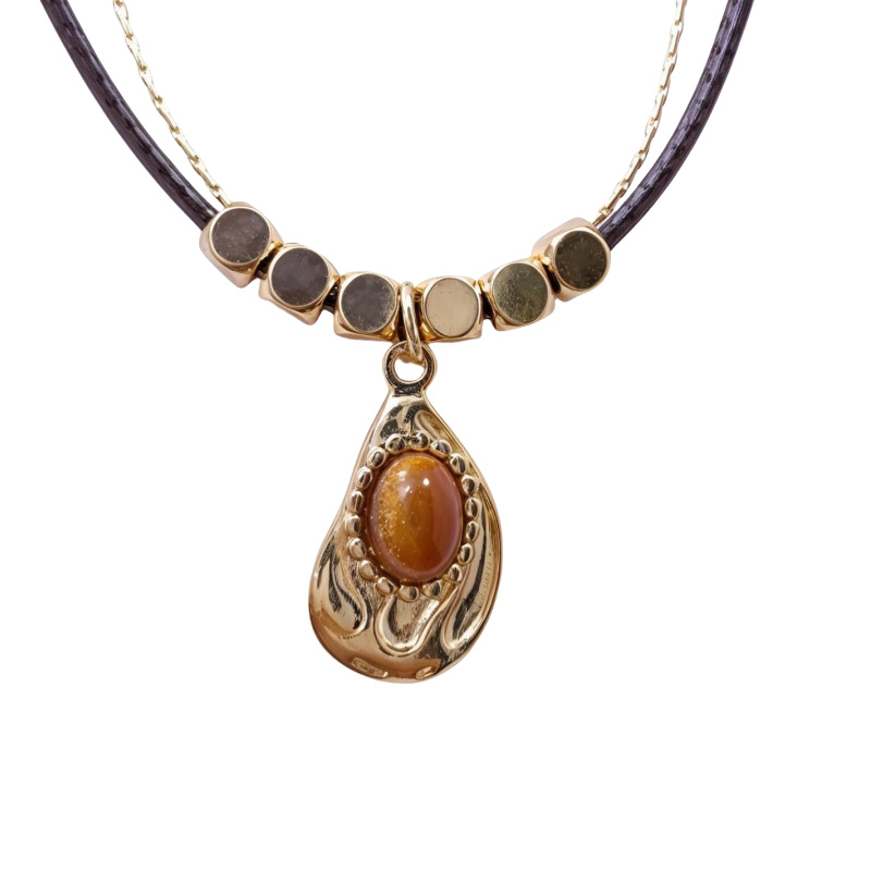 タイガーアイストーン不規則二層ネックレス