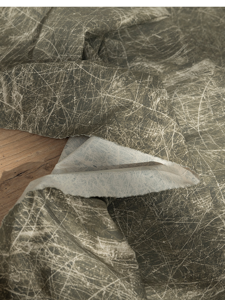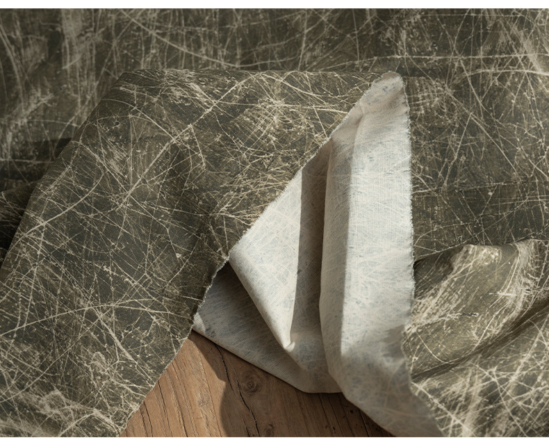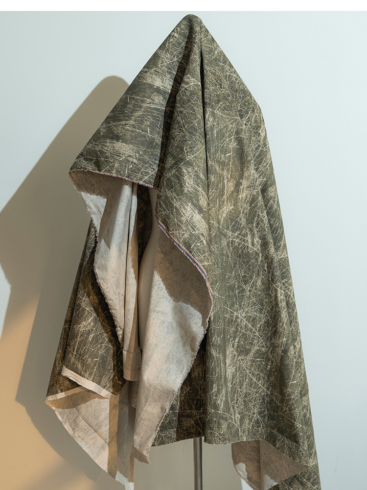 純綿軍の緑の乱紋の木目のプリントの布地は厚いです。