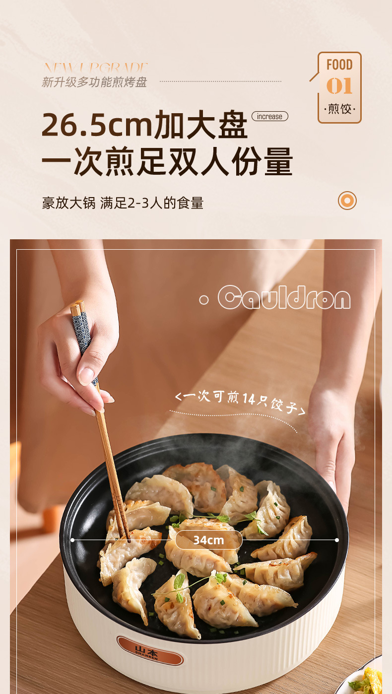 大容量分体式电火锅家用煎炒焖煮多功能电锅分区控温鸳鸯电煮锅