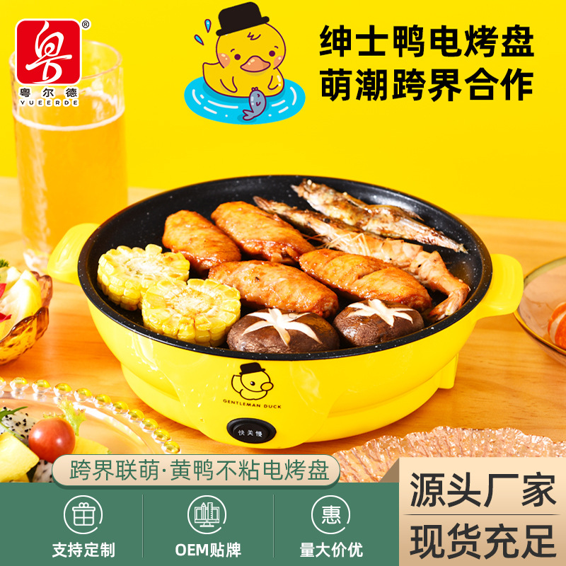 粤爾徳直供黄鴨電気焼き盤家庭用多機能非粘着オーブン携帯型宅配焼き盤代発