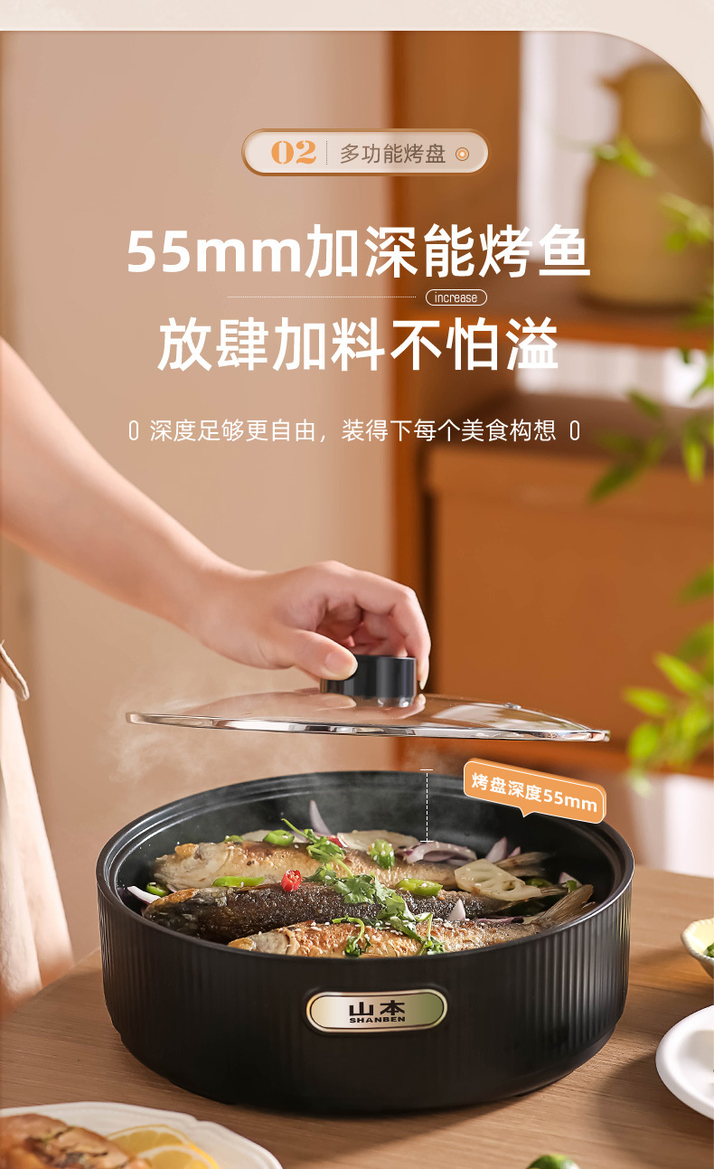 メーカー直供山本無煙焼き物無粘着焼き物焼き物店蓋付き焼き物皿多機能焼き物皿