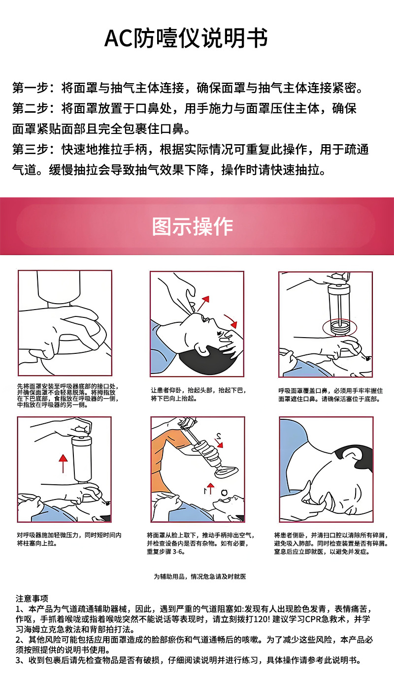 クロスボーダー手動 AC 窒息防止装置子供用ユニバーサル窒息防止マスク応急処置セルフレスキューハイムリク負圧吸引装置