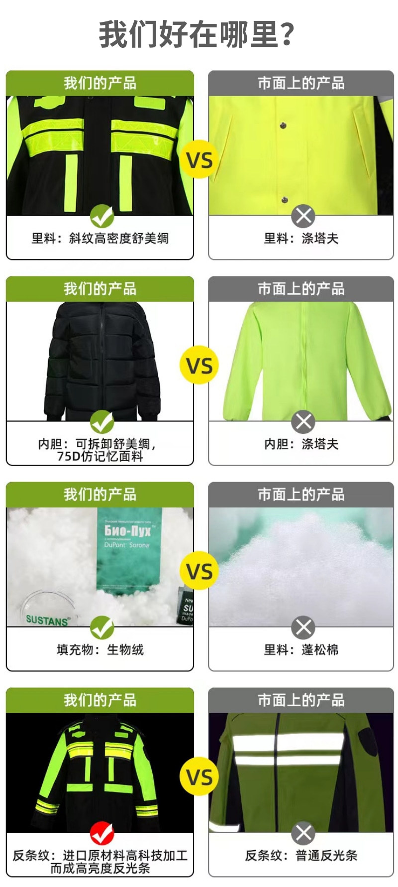交通勤務防雨綿服卸売りは内胆冬防寒保温レインコート交通路政反射綿服を厚くする