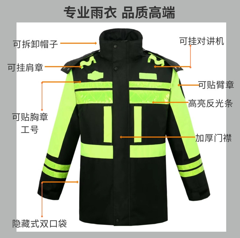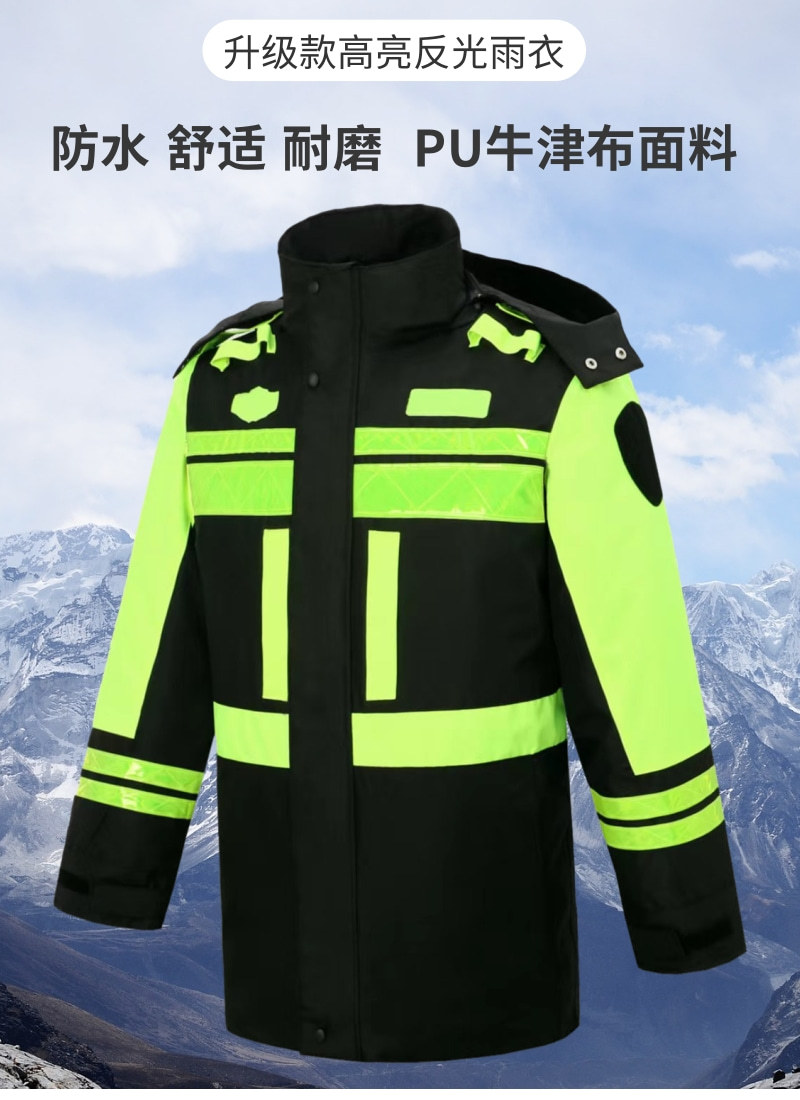 交通执勤生物绒防寒加棉雨衣成人双层丝绵反光雨衣可拆卸羽绒棉衣