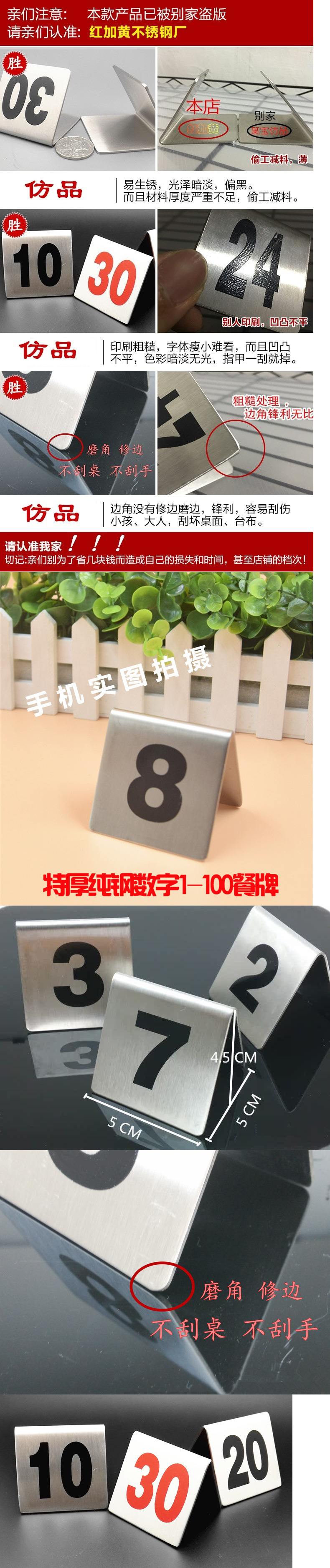 ステンレス台のナンバープレートのテーブルの上の赤い数字のレストランのブランドのテーブルのナンバープレートのナンバープレートはナンバープレートと言います。
