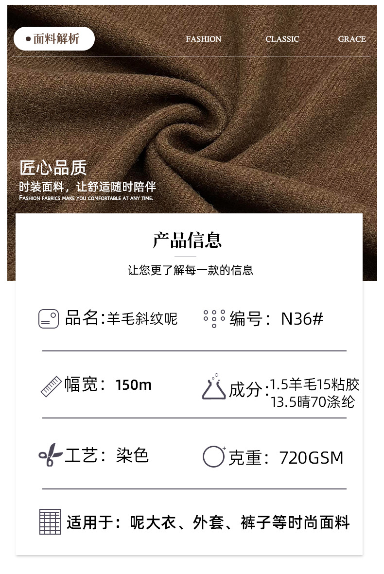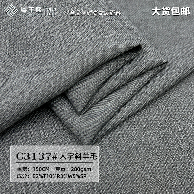 精品人字斜羊毛tr面料 鱼骨纹柔软毛感加厚高档外套西服裤子布料