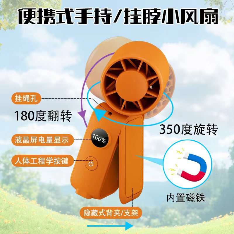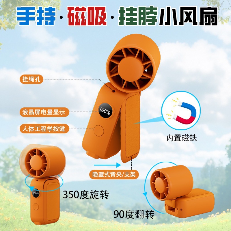源头工厂折叠挂脖手持小风扇磁吸可挂腰摆桌面头部多向旋转350度