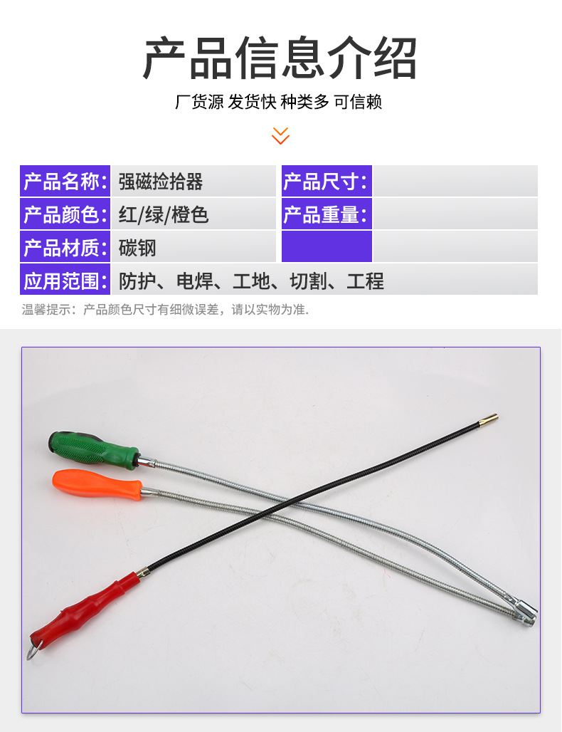 强磁捡拾器吸力棒带灯可弯式汽修维修工具磁铁吸棒螺丝固定捡拾器