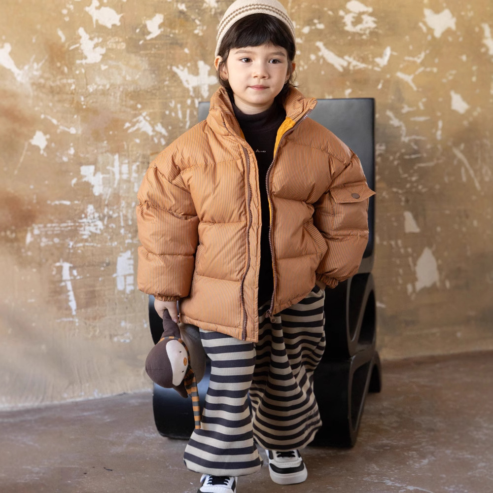 中大童2025子供用ストライプ襟付き防寒服秋冬新作トレンド子供服おしゃれジャケットパンコート