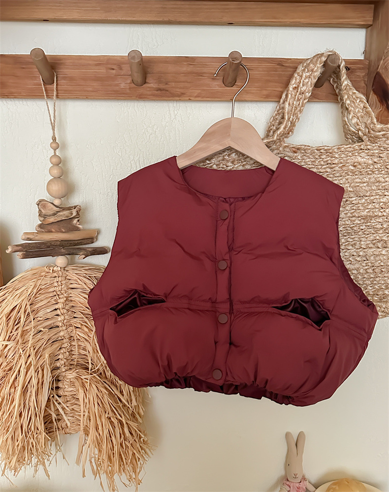 クロスボーダー子供用ダウンコットンベスト2025秋冬ショート厚く暖かいベスト男の子と女の子用、スタイリッシュなフード付きベスト