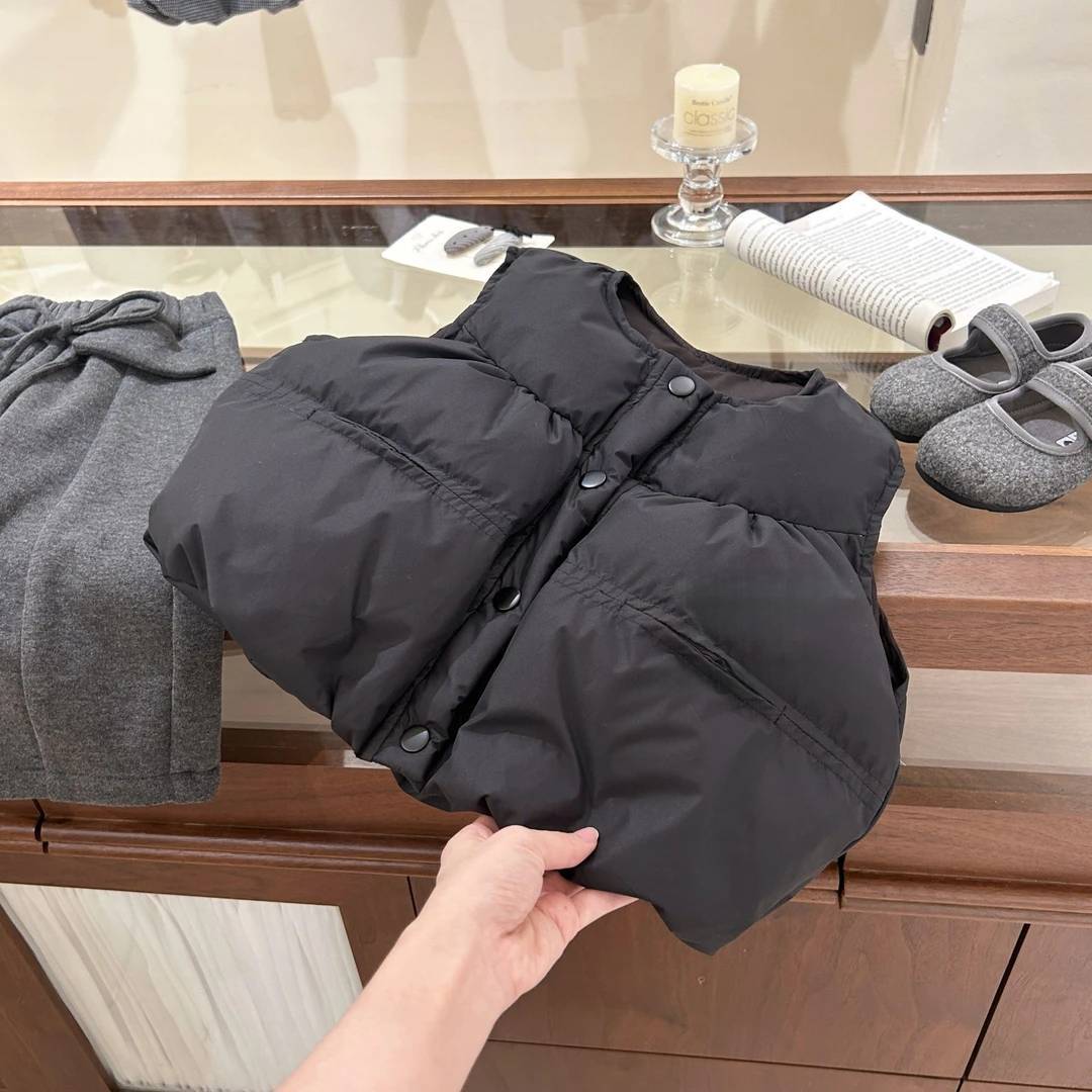 奶油儿童马甲男女童冬装加厚黑色面包服宝宝保暖洋气背心时髦跨境