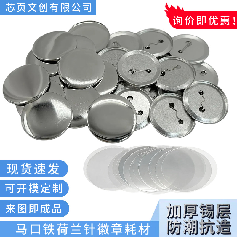 工厂批发徽章耗材马口铁吧唧底磨砂亮面荷兰针胸章工号牌定制