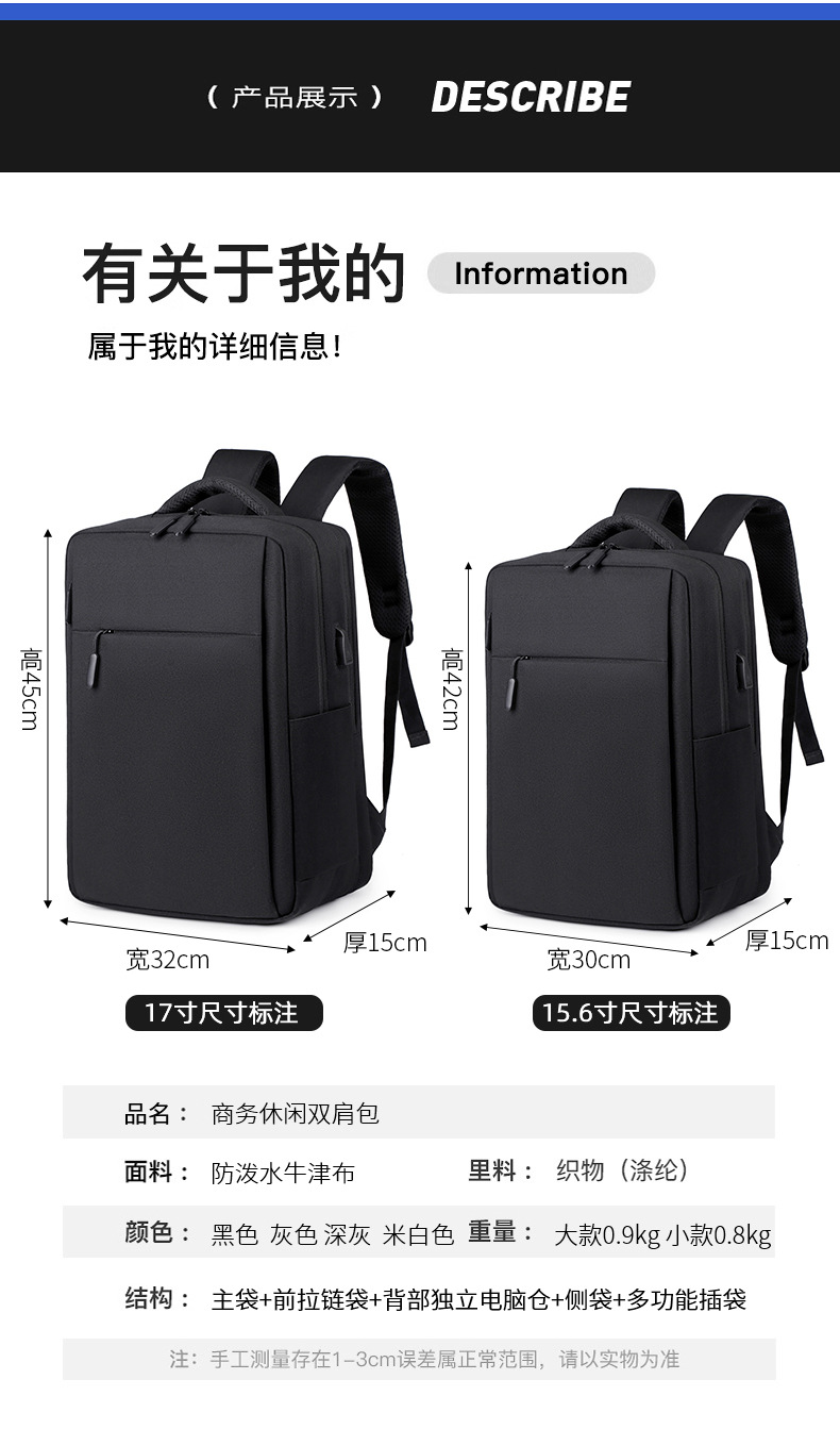 15.6寸笔记本双肩电脑包17寸游戏本初中大学生书包男女电脑背包厂