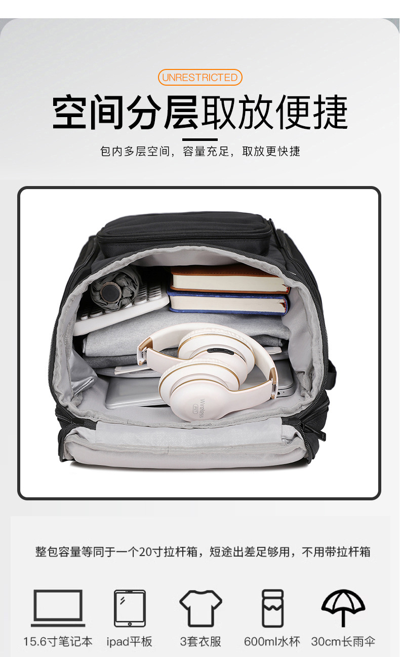 ビジネスバックパックメンズ大容量USBインターフェースコンピュータバッグ盗難防止インナーポケットプリントロゴビジネスバックパック