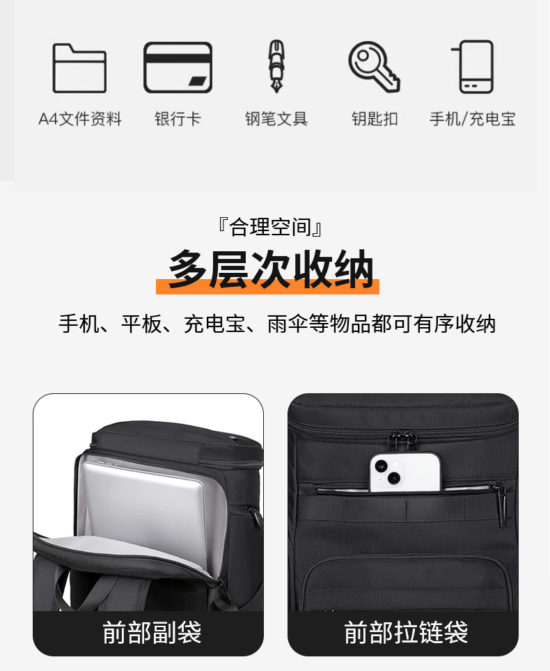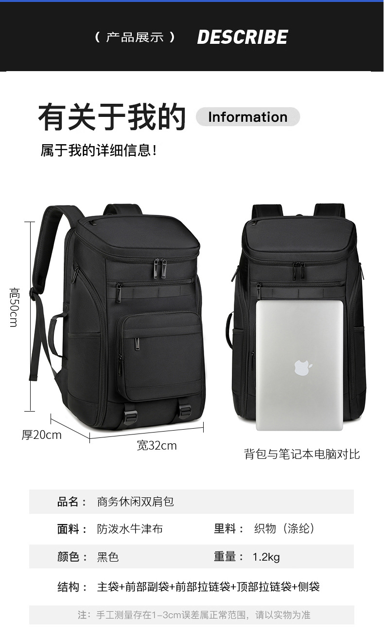 リュックサッククロスボーダーメンズ皮膜印ロゴ多層リュックサックパソコンバッグ大容量ビジネスリュックサック