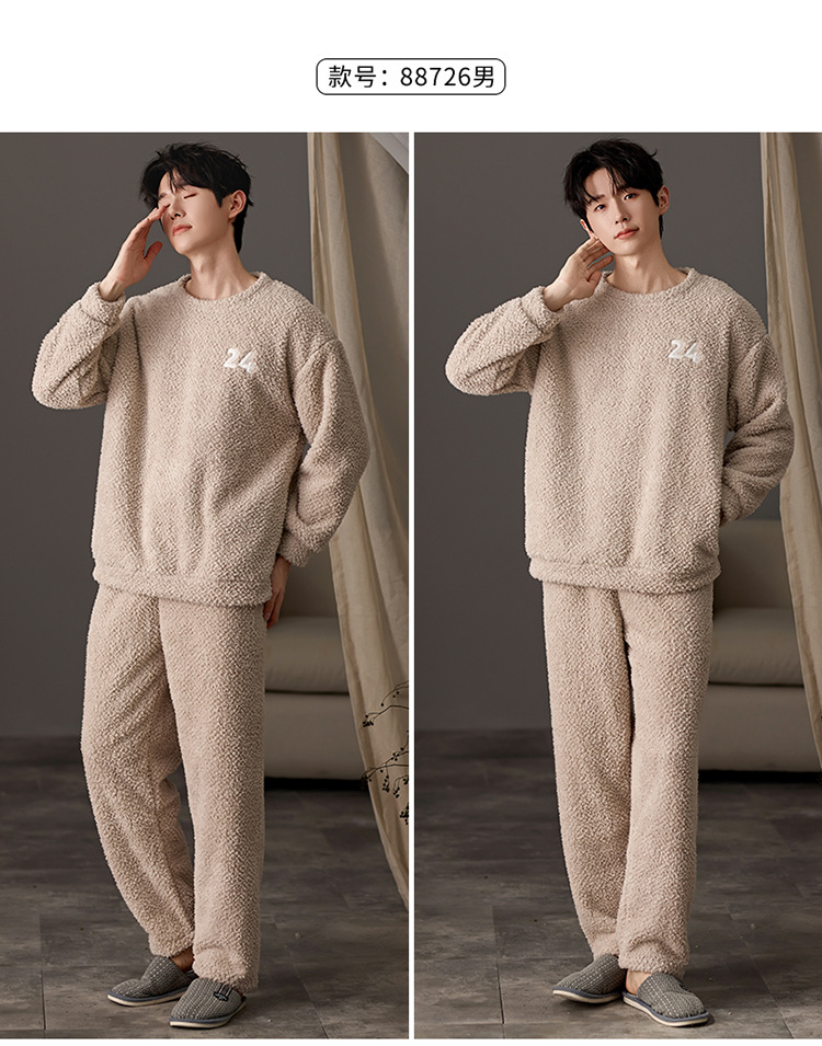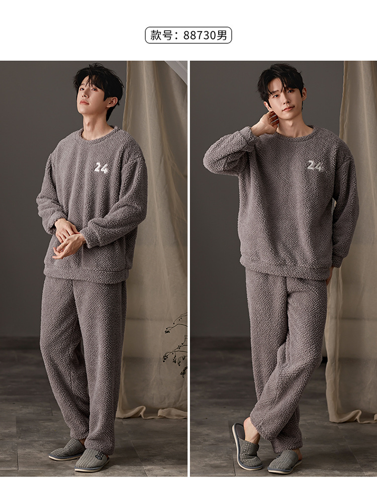 ベルベットフランネル冬カップルパジャマ男性女性秋冬厚いコーラルベルベット家庭服シンプルなスーツ