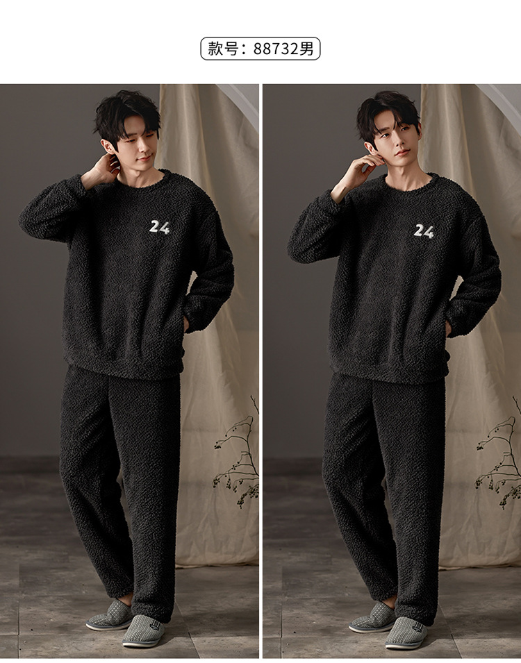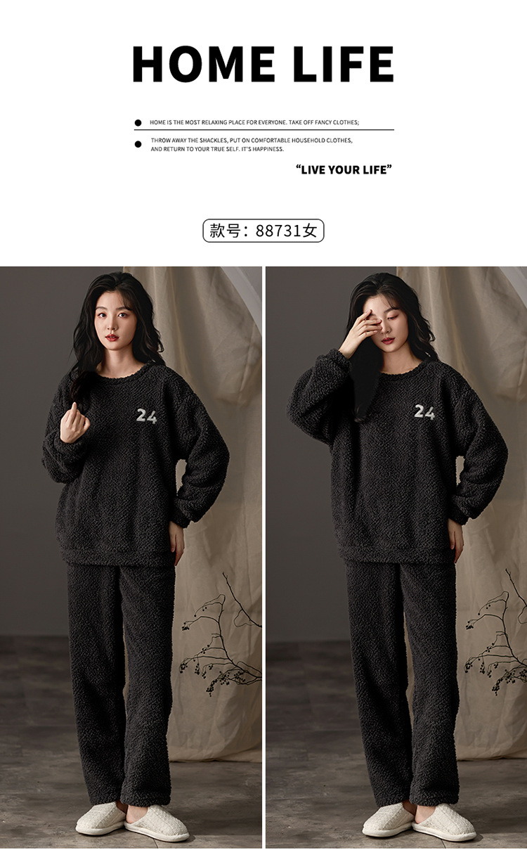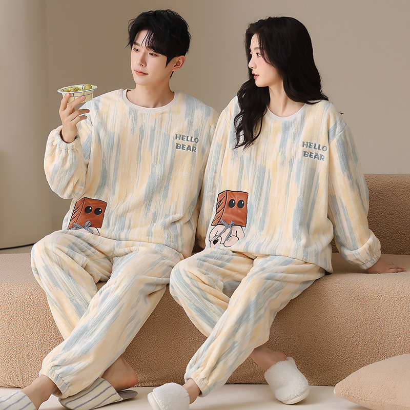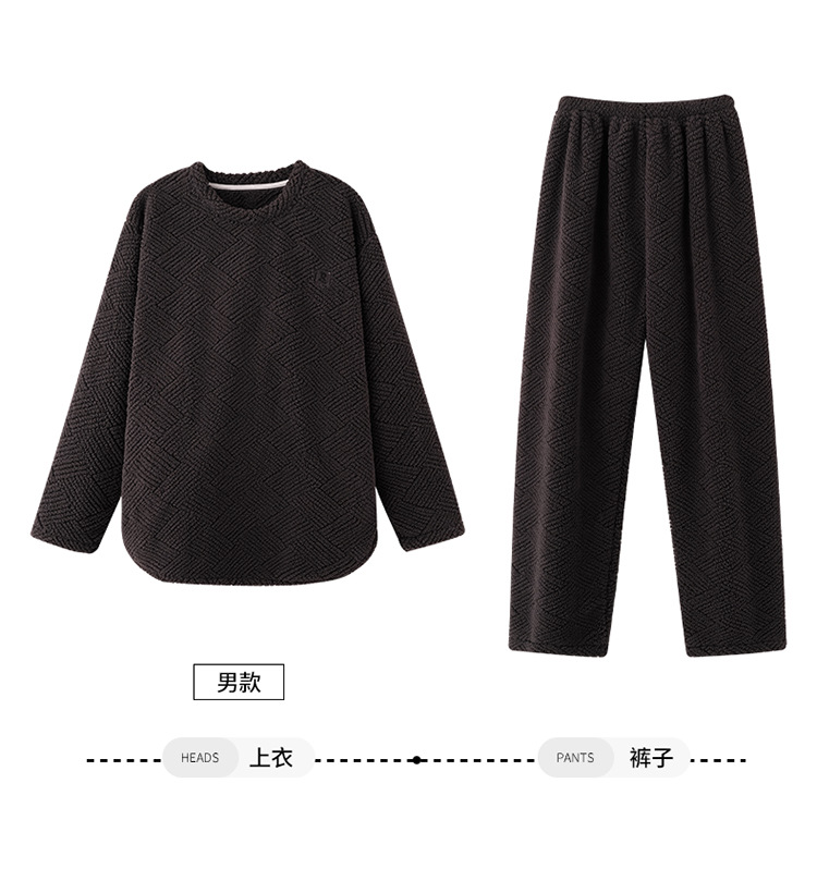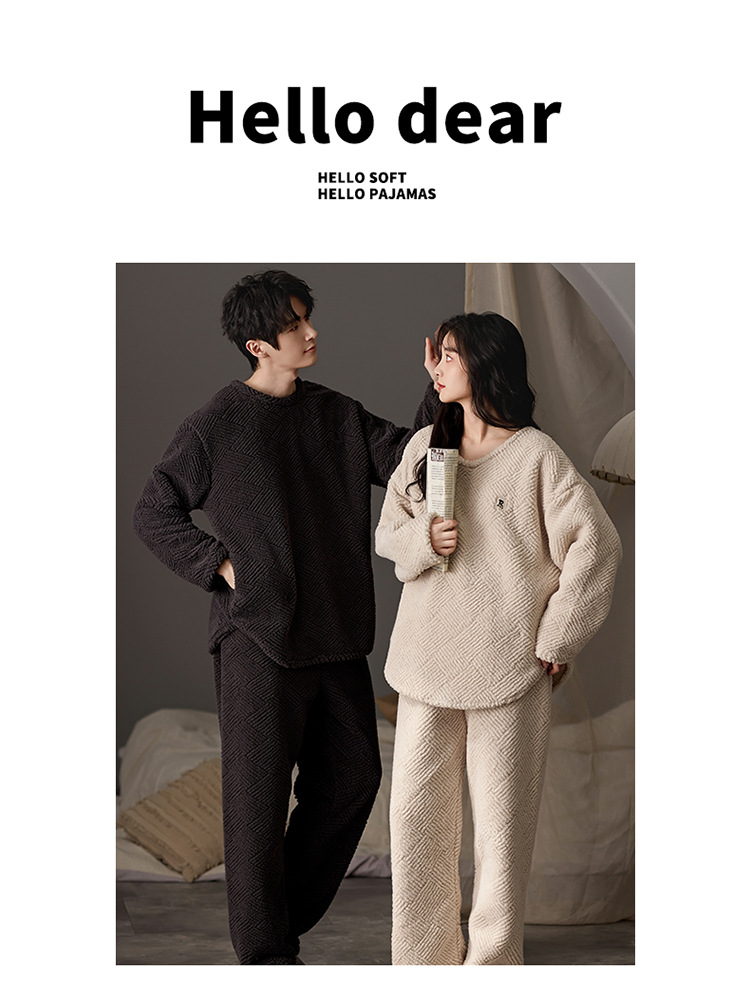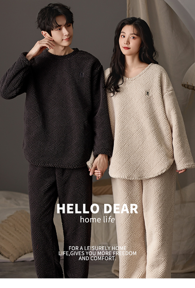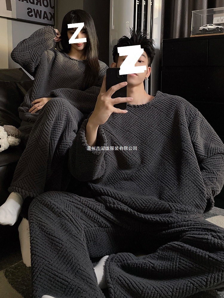 情侣睡衣珊瑚绒秋冬款加绒加厚保暖家居服套装一男一女休闲可外穿