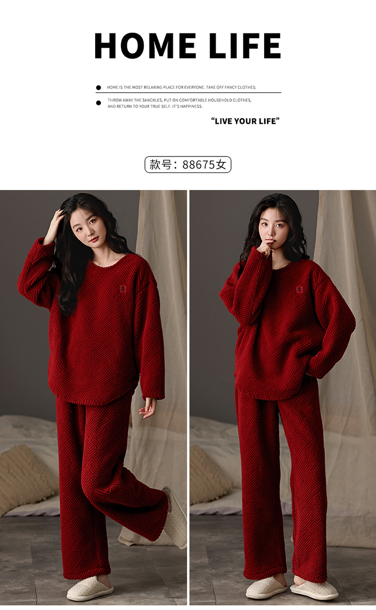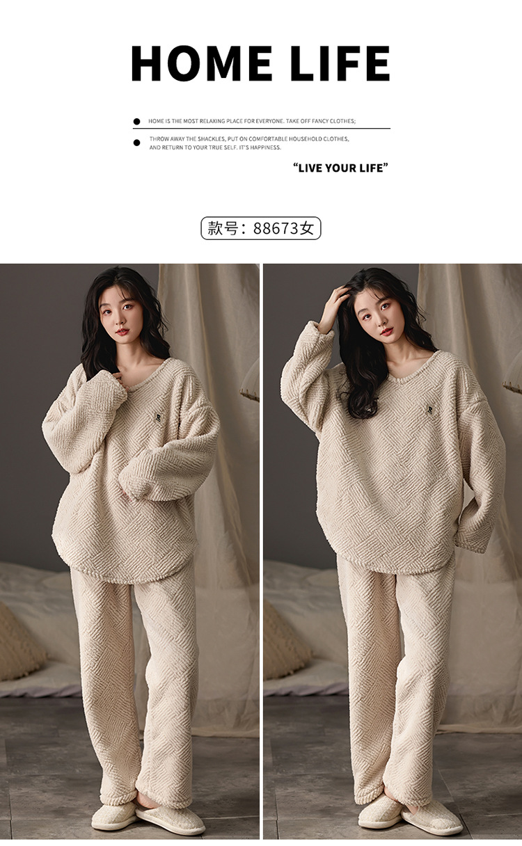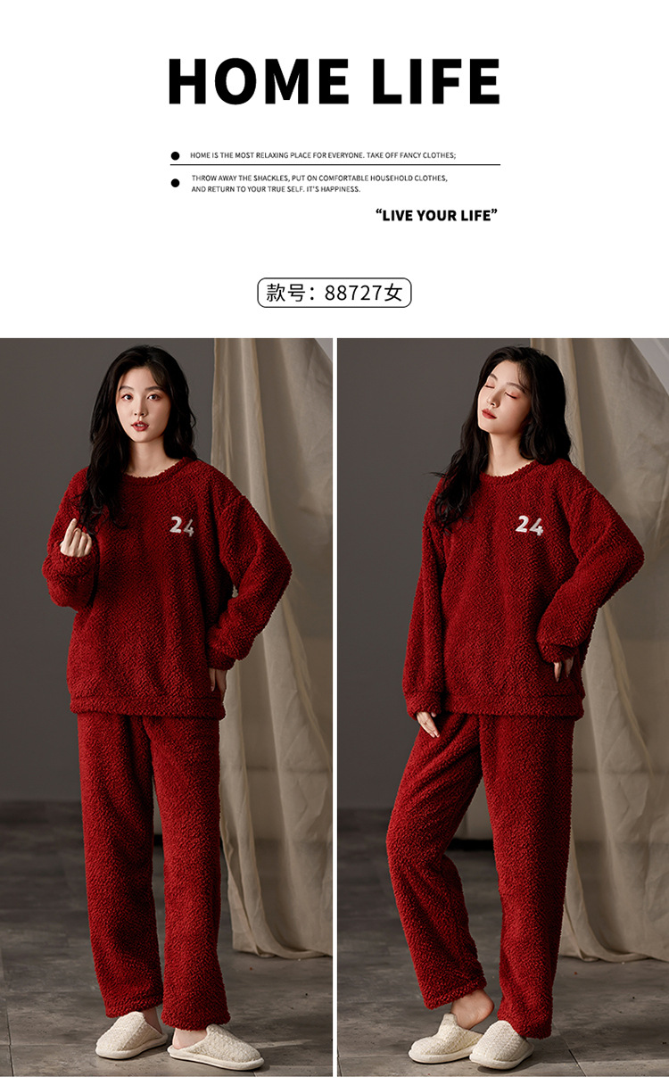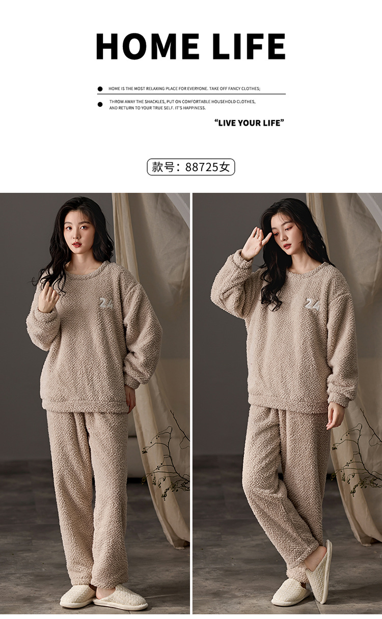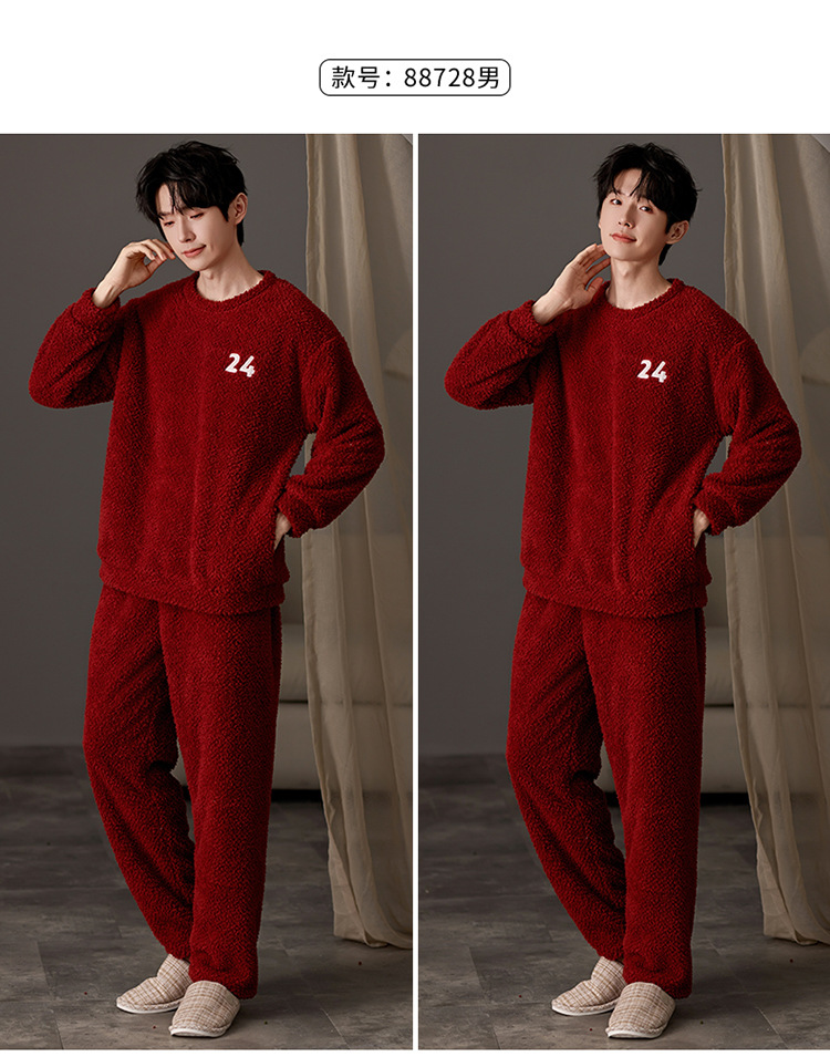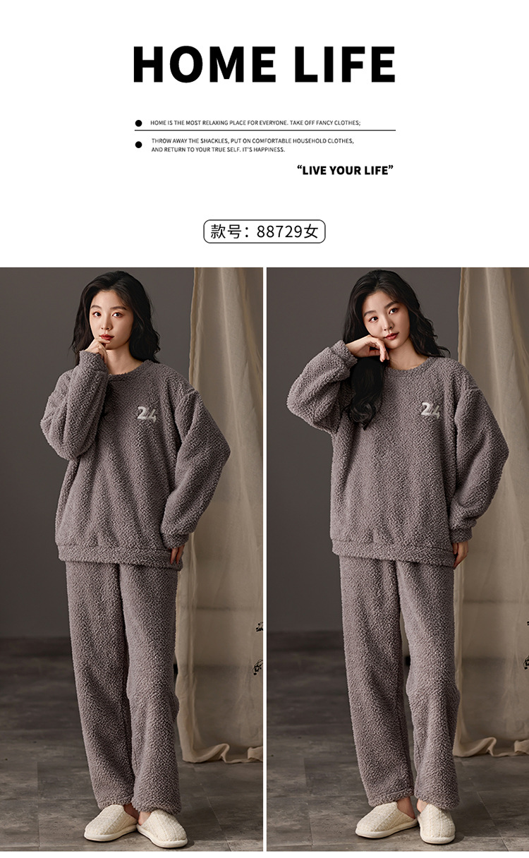 情侣睡衣珊瑚绒秋冬款加绒加厚保暖家居服套装一男一女休闲可外穿