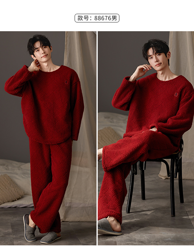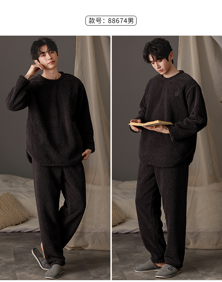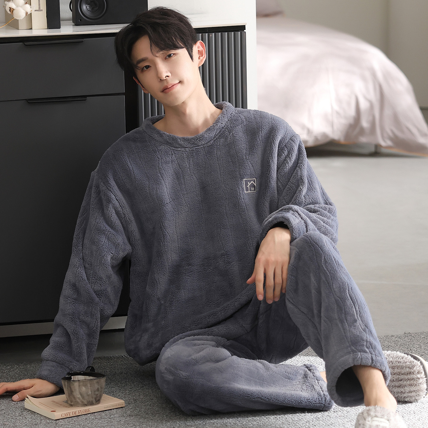 睡衣男士冬季加厚加绒珊瑚绒长袖长裤秋冬款保暖家居服两件套装