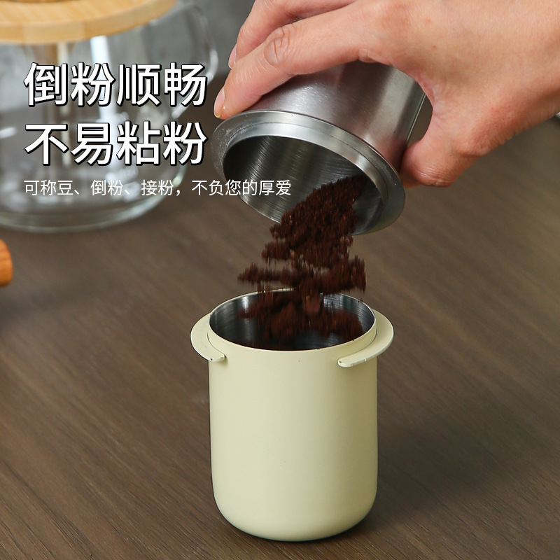 厚い304ステンレスの粉の杯のイタリア式のコーヒーマシンの取っ手の粉の器の香りの杯のコーヒーは豆の計量の杯を量ります