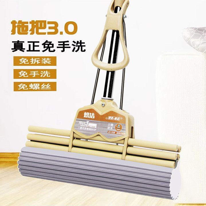 新型スポンジモップ 家庭用 簡単モップ 手洗い不要 ローラー式 吸水絞り機能付き ジェルモップヘッド